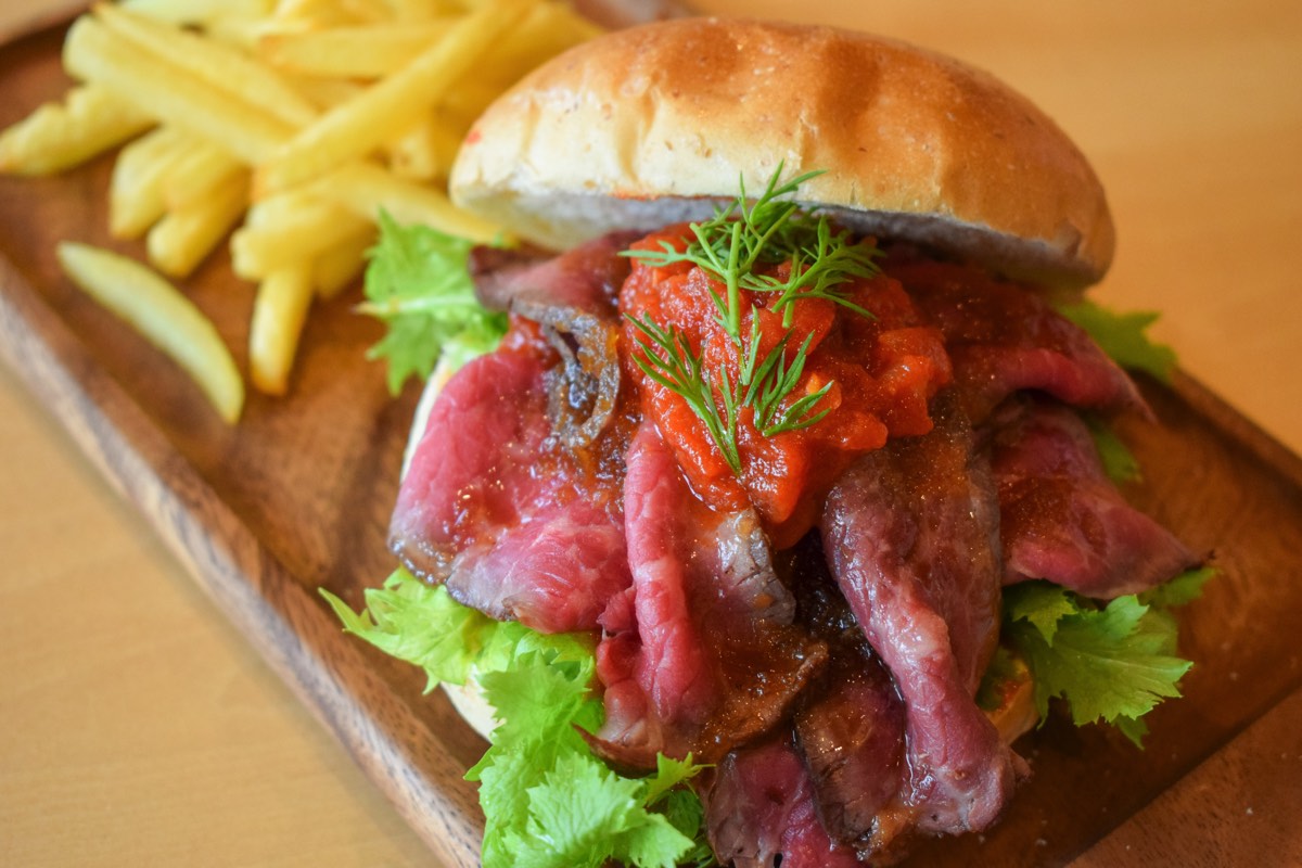季節のバーガーもあり、今は甲州ワインビーフのローストビーフというから、何とも贅沢だ。