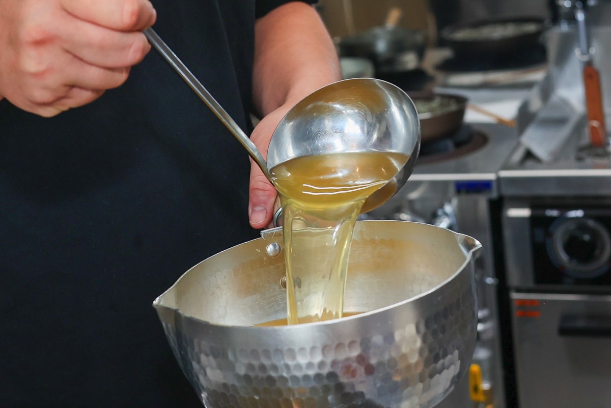 ひと口めは煮干しの強烈なインパクトと濃厚な旨味を感じる。えぐみや臭みは全くなく、何とも上品で、深みが織りなす複雑な香りと味わいに魅了される。低温でじっくりと出汁をとっているからだというが、そのさじ加減こそが職人技だ。