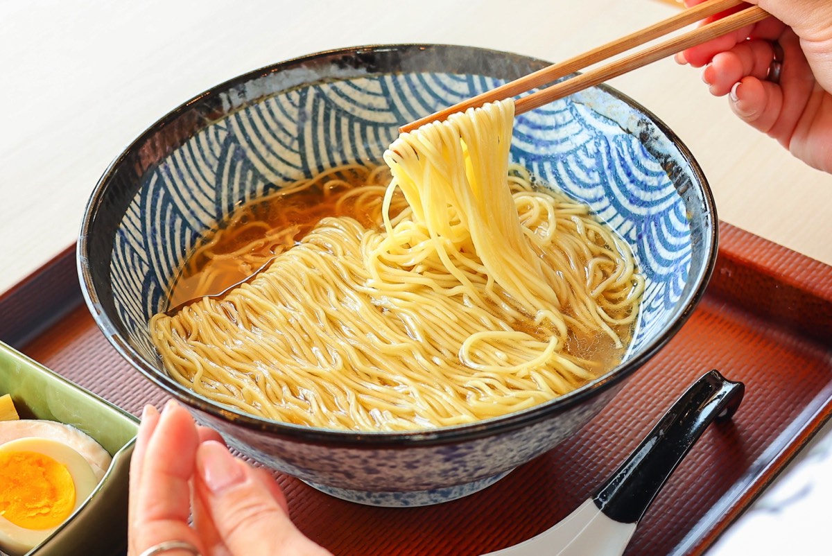 和田製麺の特注細ストレート麺は、細麺ながらかための食感で、パツンとした歯切れの良さも最高!しなやかにするすると口の中に入っていく。これはもう美味しすぎて、うっかりトッピングを入れるのを忘れてしまいそう!