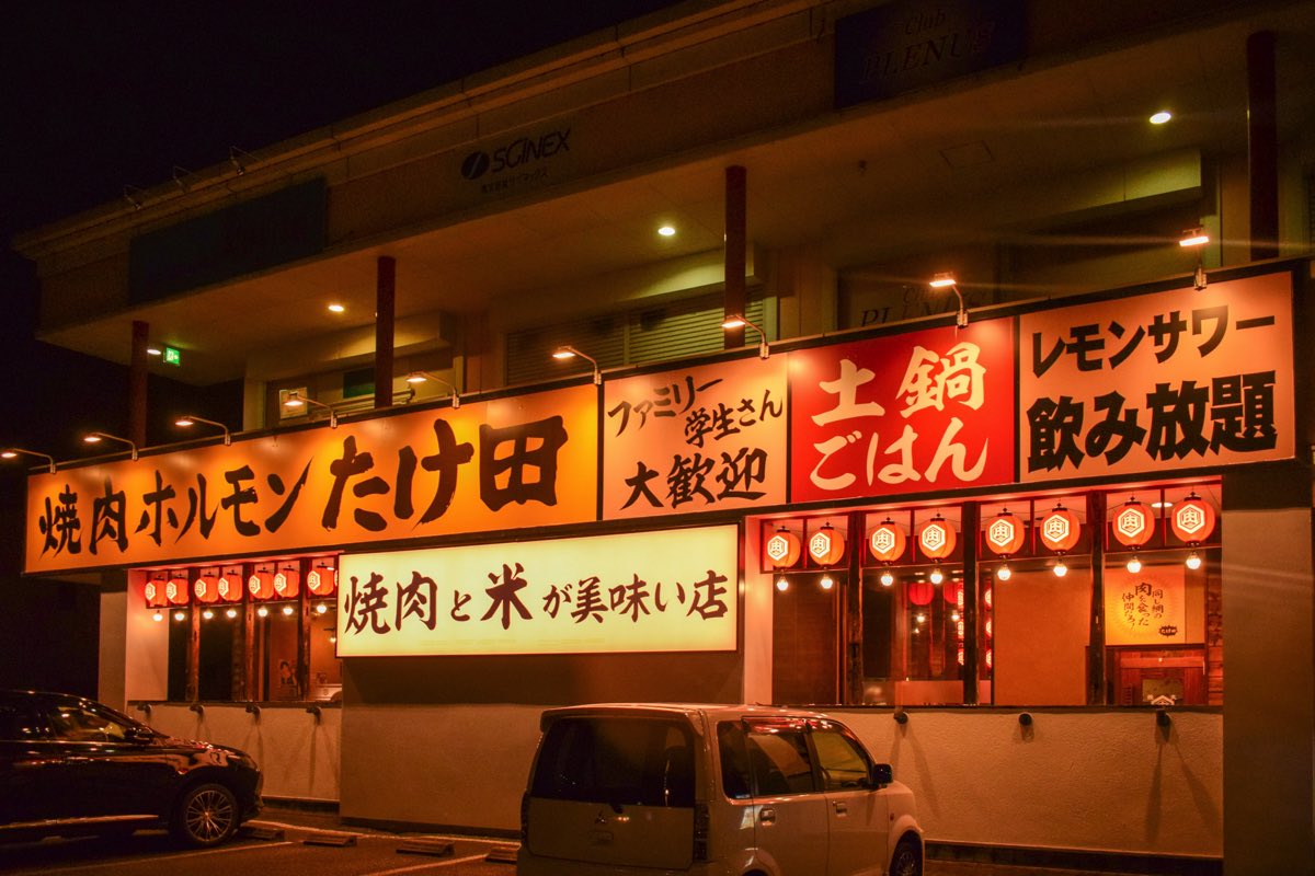 甲府市平和通り沿いに「焼肉ホルモンたけ田 甲府平和通り店」が山梨初出店!ドーンと黄色い看板が目立つこちら、炊きたての土鍋ご飯とお値打ち価格で黒毛和牛が楽しめることで人気の焼肉居酒屋が2024年6月11日オープンした。