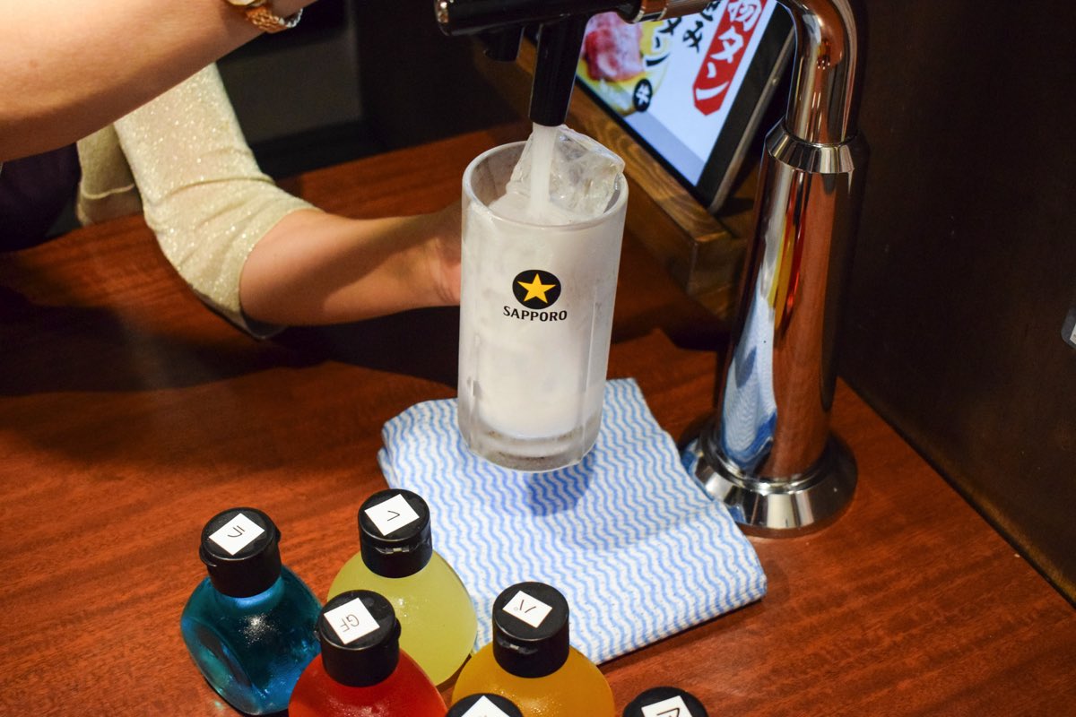 しかもアセロラ、ラムネ、グレープフルーツ、ピーチティーなど6種類のシロップの中から好きなものを1卓2種類選べ、味変も楽しめちゃう。