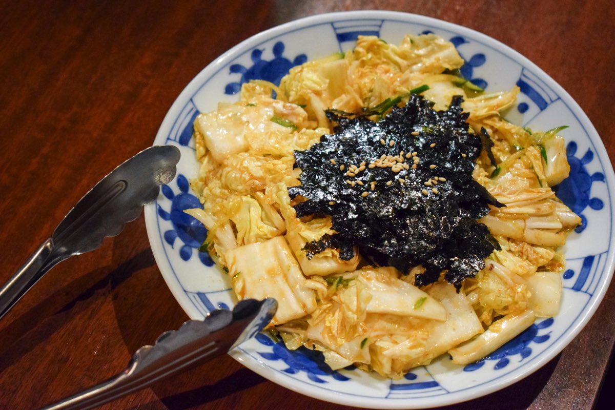 焼き肉の合間の箸休めには「たけ田サラダ」をぜひ。シャキシャキ白菜とピリ辛の味付けの特製ダレで箸が止まらない~!