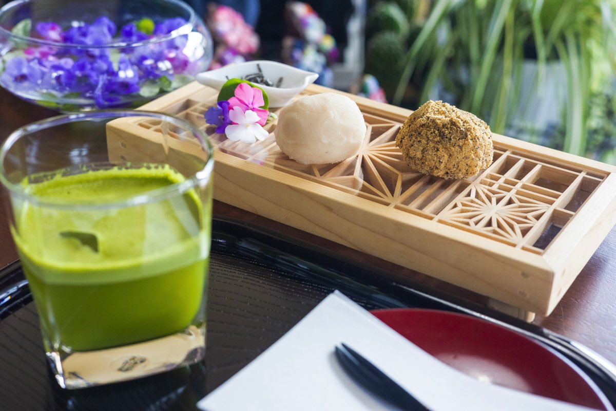 春は白餡に宇治抹茶で新緑に浮かぶ富士桜を、夏は手挽き胡麻の山肌に金箔で月あかりを、自家焙煎黒胡麻きな粉にクコの実と胡桃を添えて実りの秋を、冬はココナッツパウダーで新雪をイメージさせた和と洋のコラボを楽しめる。