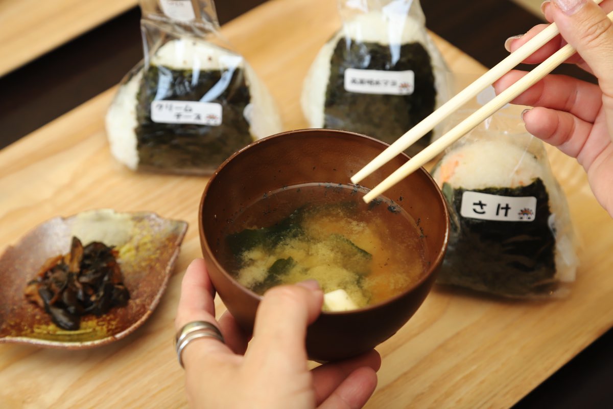 イートイン限定では、プラス150円でお味噌汁と漬物付きで楽しめちゃう♪