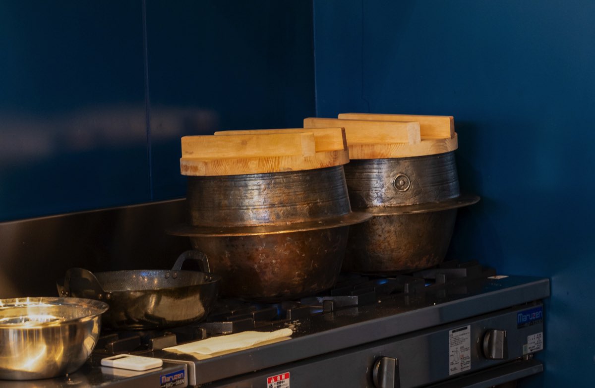 おむすびは何といってもご飯が要ということで、その時々で一番おいしいお米をその都度仕入れ、鉄羽釜で丁寧に炊き上げている。