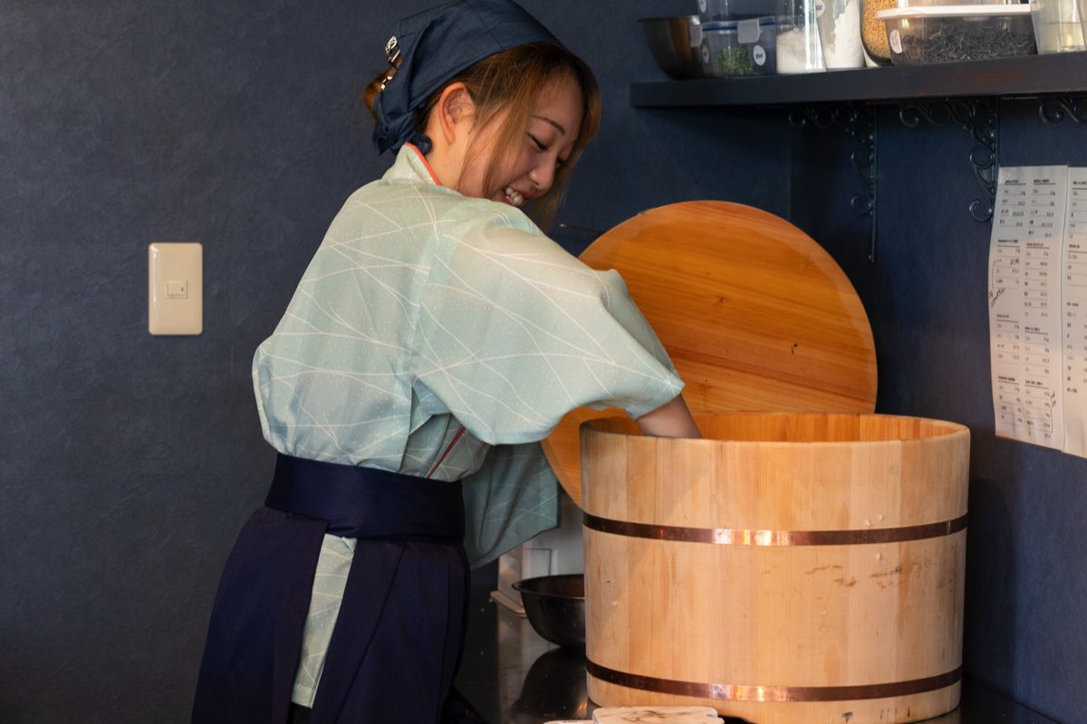 この店のオーナーはナント、18歳の若き起業家、月葉さん!この日も袴姿の月葉さんが朝から大奮闘中~。