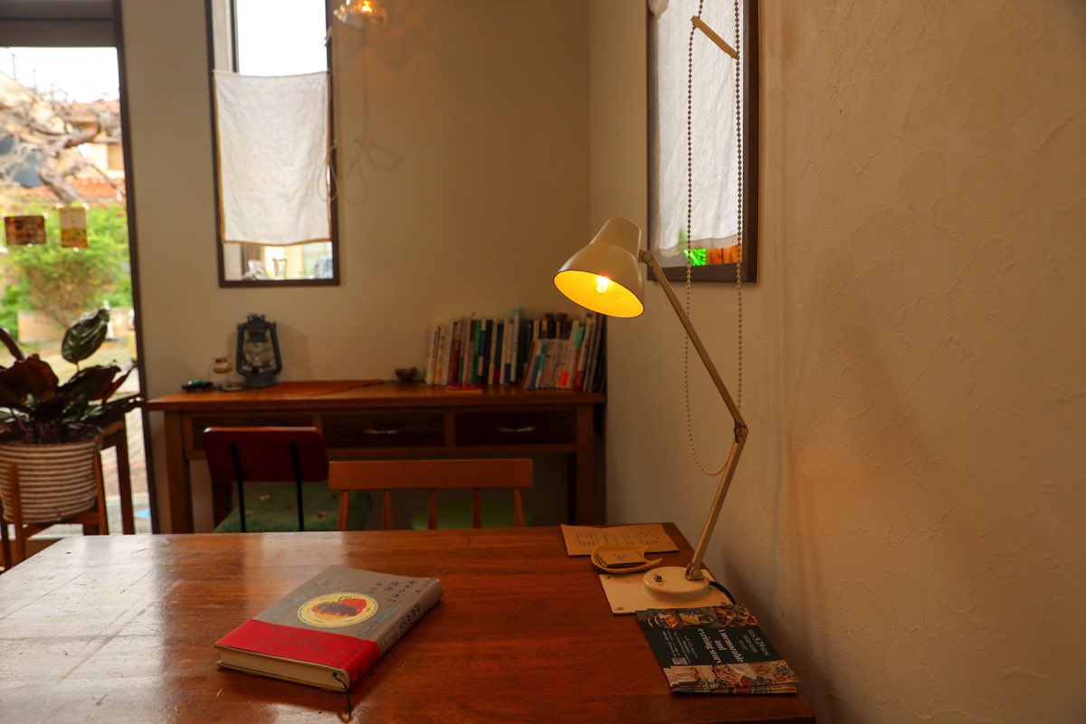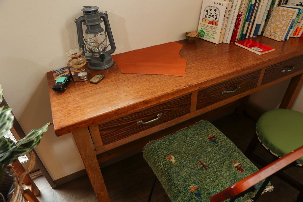 本日はおひとり様なので、アンティークな風合いがカフェ空間にフィットし、豊かな空間を彩るデスクに座ってみた。