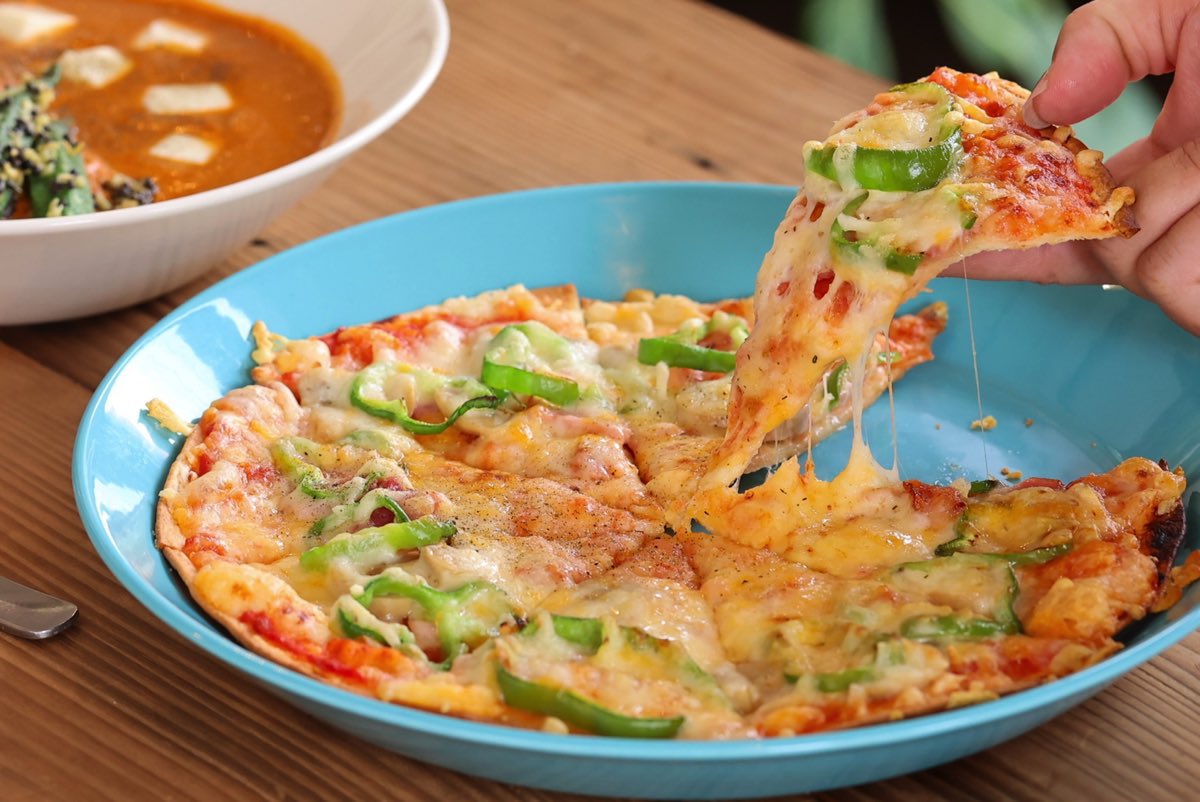 また、チーズ専門店「チーズ王国」のナチュラルチーズをふんだんに使ったピザも絶品!チーズの美味しさが際立ち、カリッとクリスピー生地でペロリといけそう。ワインもあるので、チーズアラカルトをつまみにちょい飲みも。