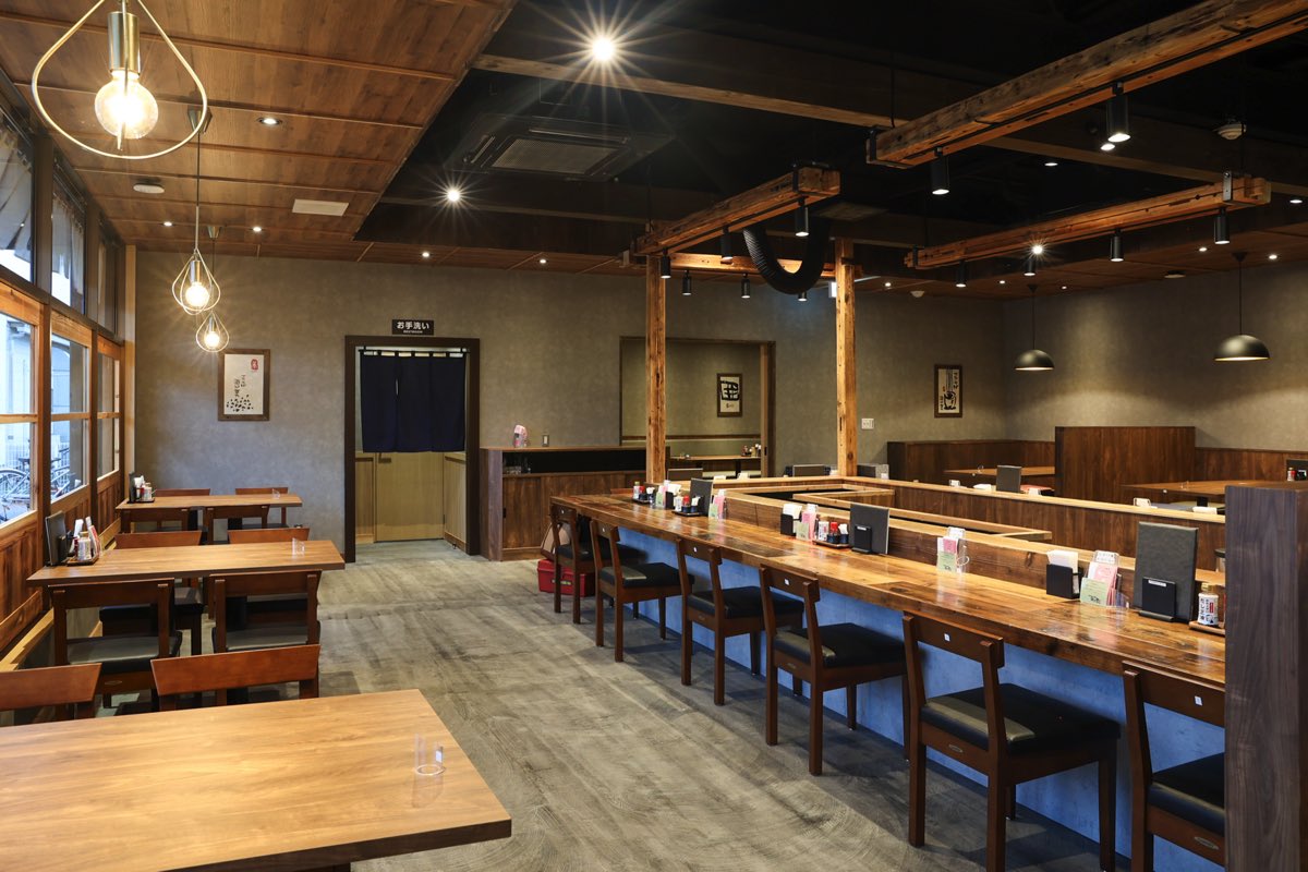 和モダンな店内にはカウンターとテーブル席を配し、席数が豊富なのでおひとり様からファミリーまで幅広い年齢層にぴったりだ。