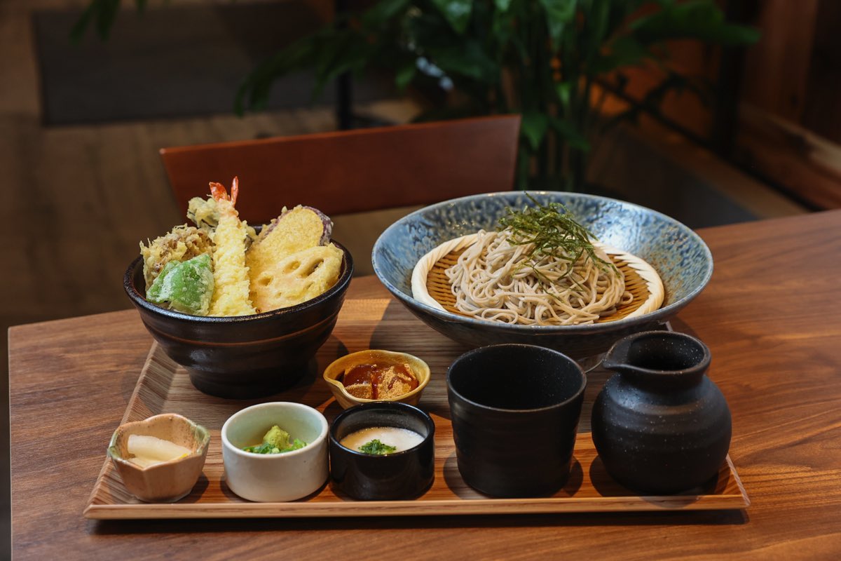 そのほか、お蕎麦に天丼が付くセットもラインナップ。そばの実を入れて炊いたご飯に揚げた天ぷらと甘めのタレが食欲増進して、美味しくいただける。