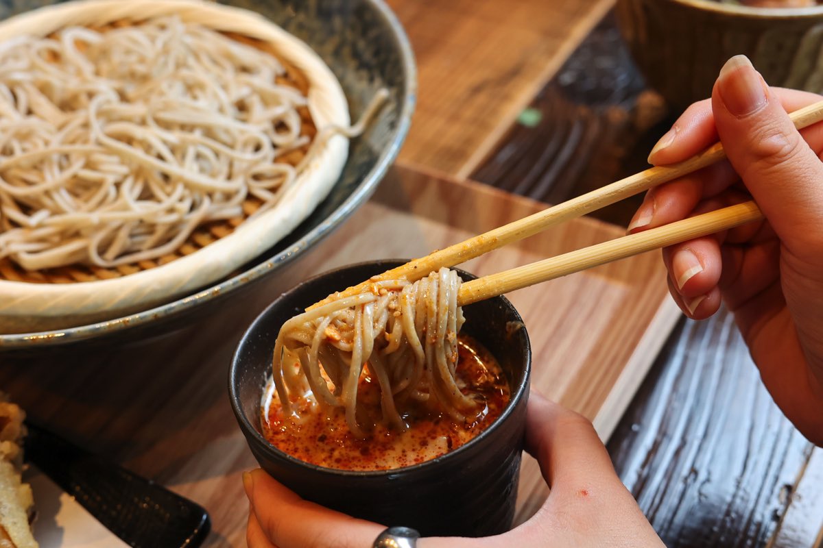 そして、おかわりと同時に囲炉裏スタッフイチオシの「胡麻つゆ※ラー油付き」を追加!もったりとそばに絡む胡麻つゆと、ザクザクと香ばしいラー油は間違いなしの組み合わせ♡