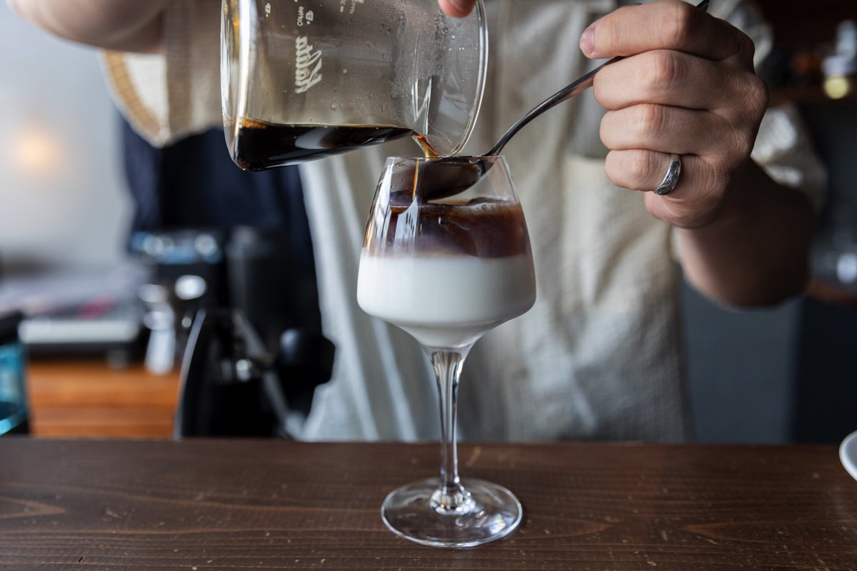 これからは「カフェオレ」もスタート!2層になったフォトジェニックなカフェオレは、コーヒーのすっきりとした口当たりとコーヒーと好相性のミルクのまろやかさを兼ね揃えた上品な味わいが魅力だ。
