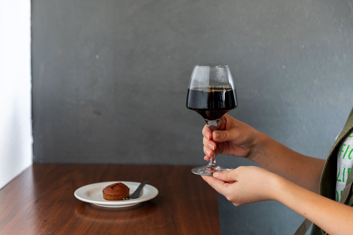 中村さんが丁寧にハンドドリップしたホットコーヒーは、インパクトのある深みを感じつつも後味スッキリ!後を引く甘みと軽い口当たりでとっても飲みやすい。