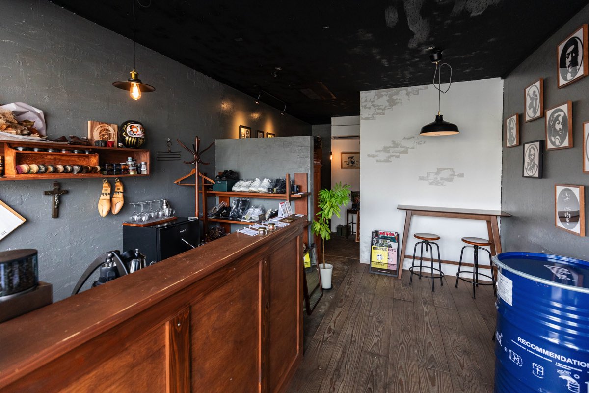 「いつか“靴磨きができるカフェ”をやりたかった」というオーナーの井上さん。元「いちらカフェ」でコーヒーを淹れていた中村さんが、靴磨きのお客さんで来たことが出会いのきっかけでコーヒースタンドを併設し、夢を叶えた。