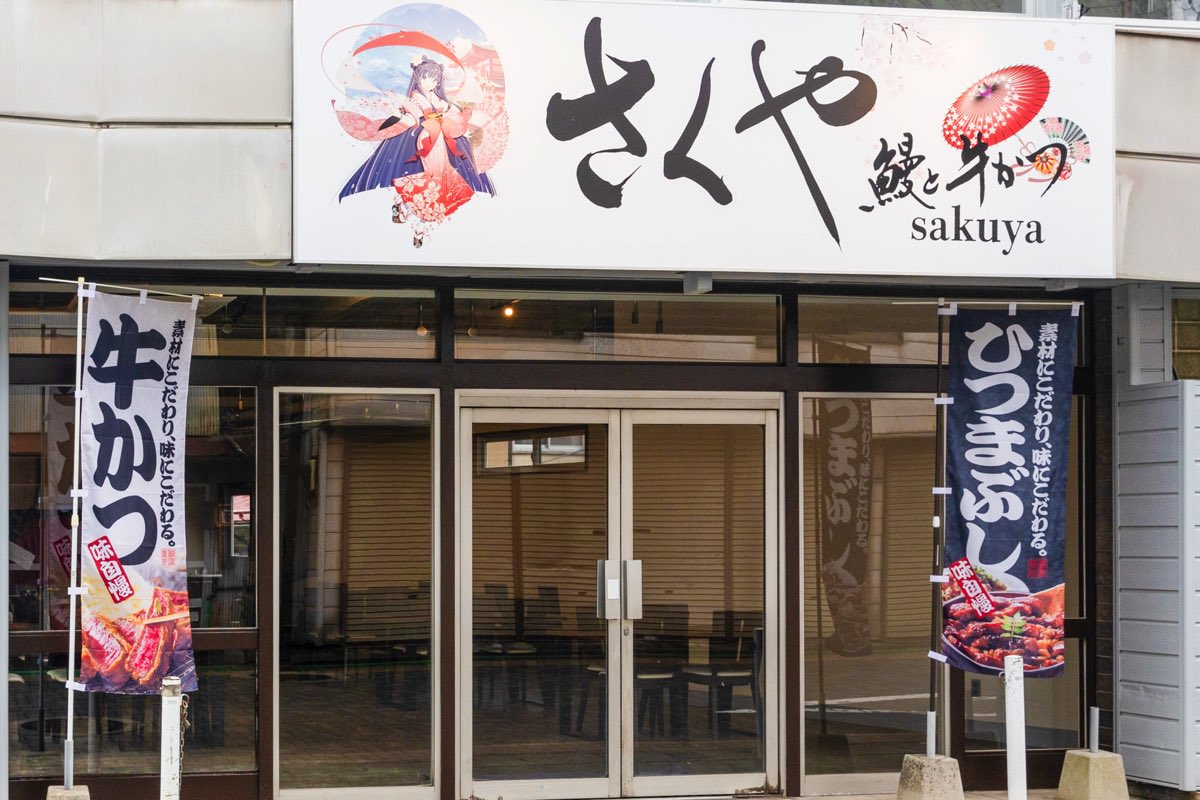 昭和レトロな面影が残る西裏地区、月光寺駅近くに「鰻と牛かつ さくや」が2024年10月20日オープン!昔懐かしい佇まいの喫茶店や飲食店が軒を連ねる中で、ひと際賑やかな雰囲気を放つ。