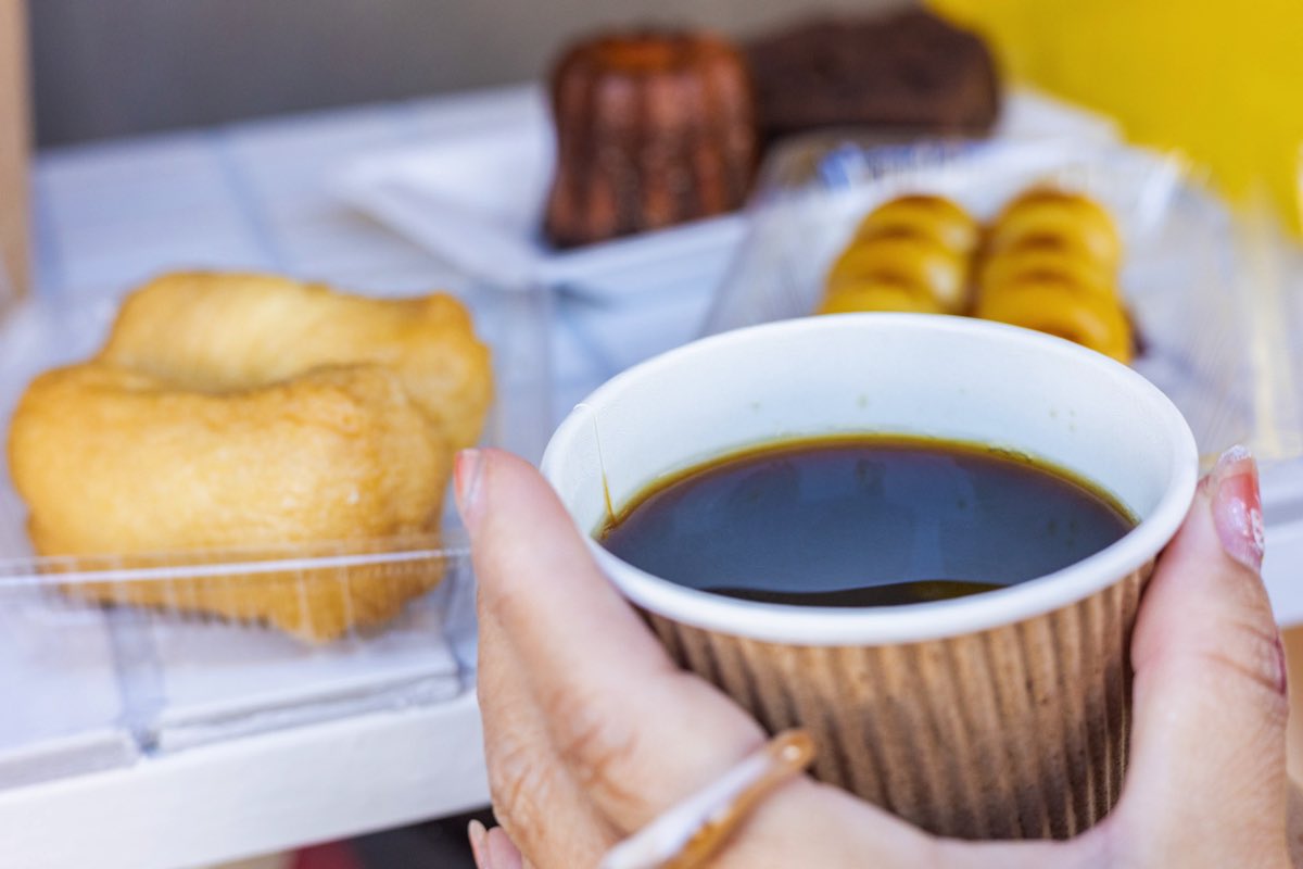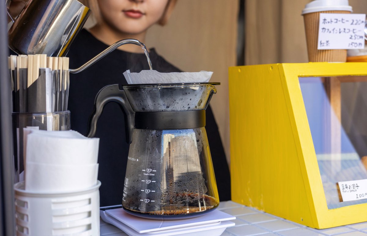 和・洋のお菓子に、ハンドドリップで丁寧に淹れてくれる深煎りコーヒーはいかが。酸味が少なく、誰もが飲みやすい1杯に。