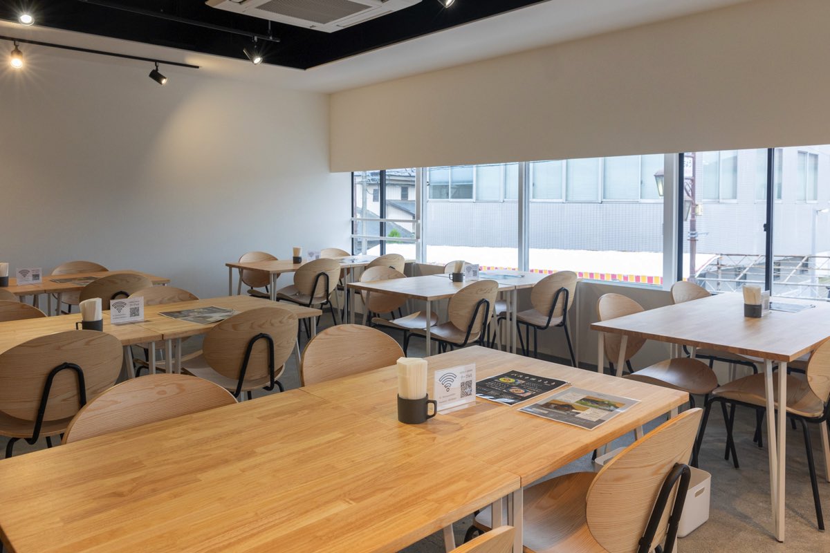 大きな窓が開放的な広々とした店内は、入口からはなかなか想像できない。奥には10人ほどの個室もあり、キッズチェアも完備しているので、子連れでも安心だ。