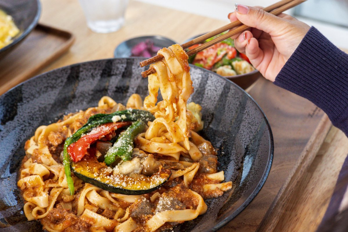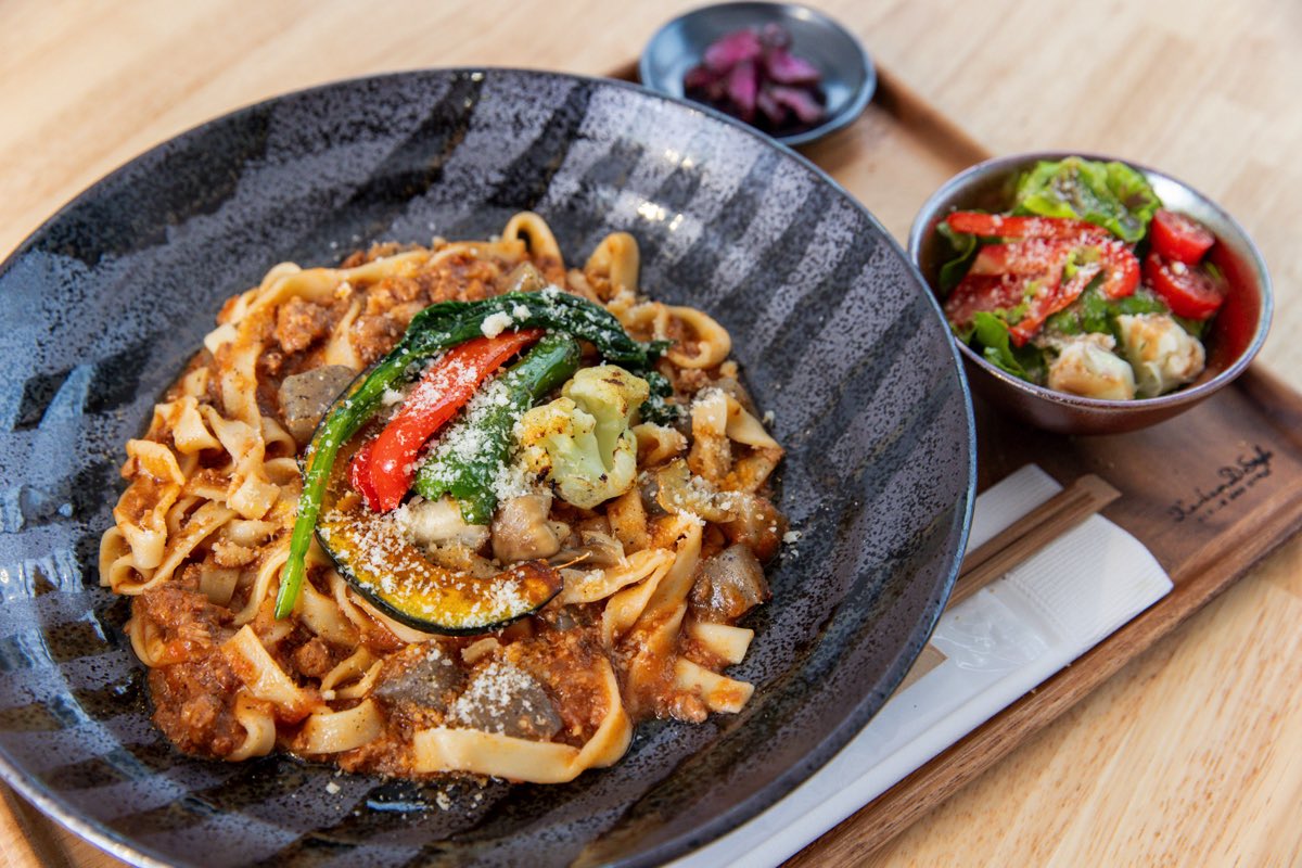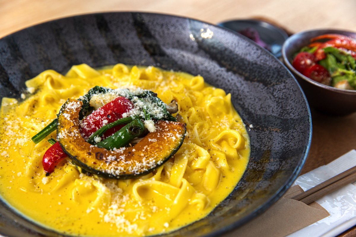 山梨のソウルフード、ほうとうをパスタに見立てた「パスタほうとう」など、伝統と革新を融合させた新しいスタイルを楽しめる。