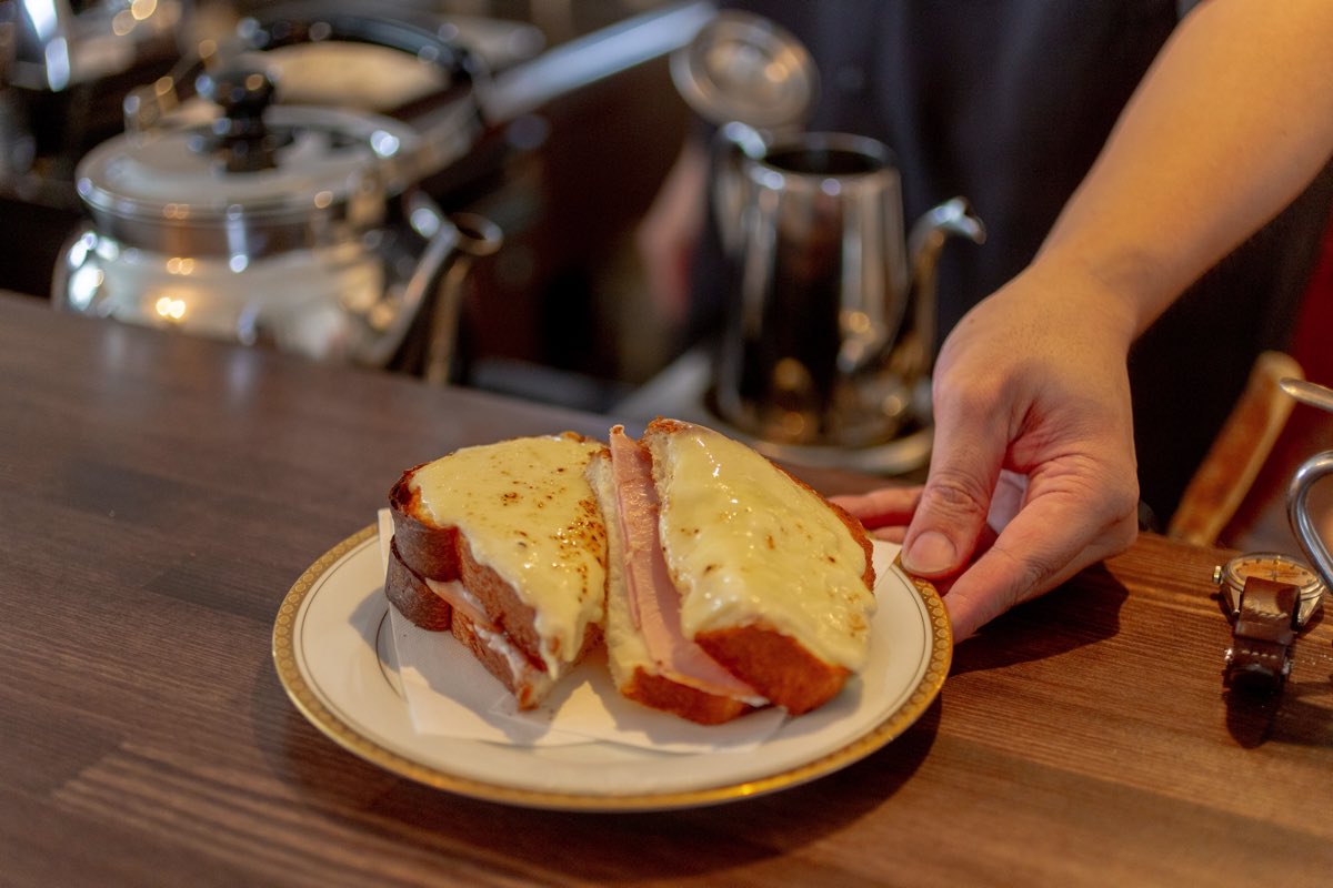 ホワイトソースも手作りしているというクロックムッシュはランチにもオススメの逸品。トロリとチーズがとろけ、パリジャンさながらに手づかみでカリカリといただこう。