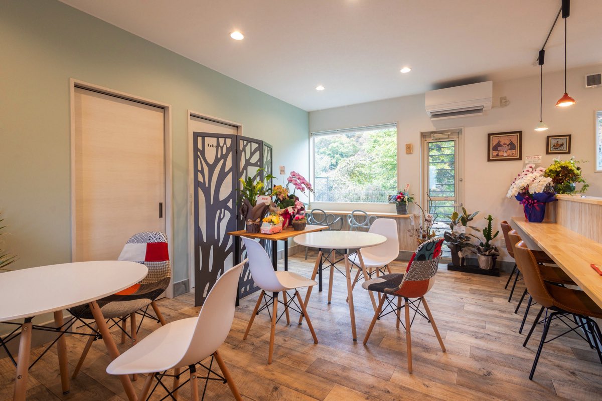 落ち着いた外観とはギャップのある、北欧風の明るい店内にはカフェスペースもあり、テイクアウトはもちろん、イートインも可能だ。