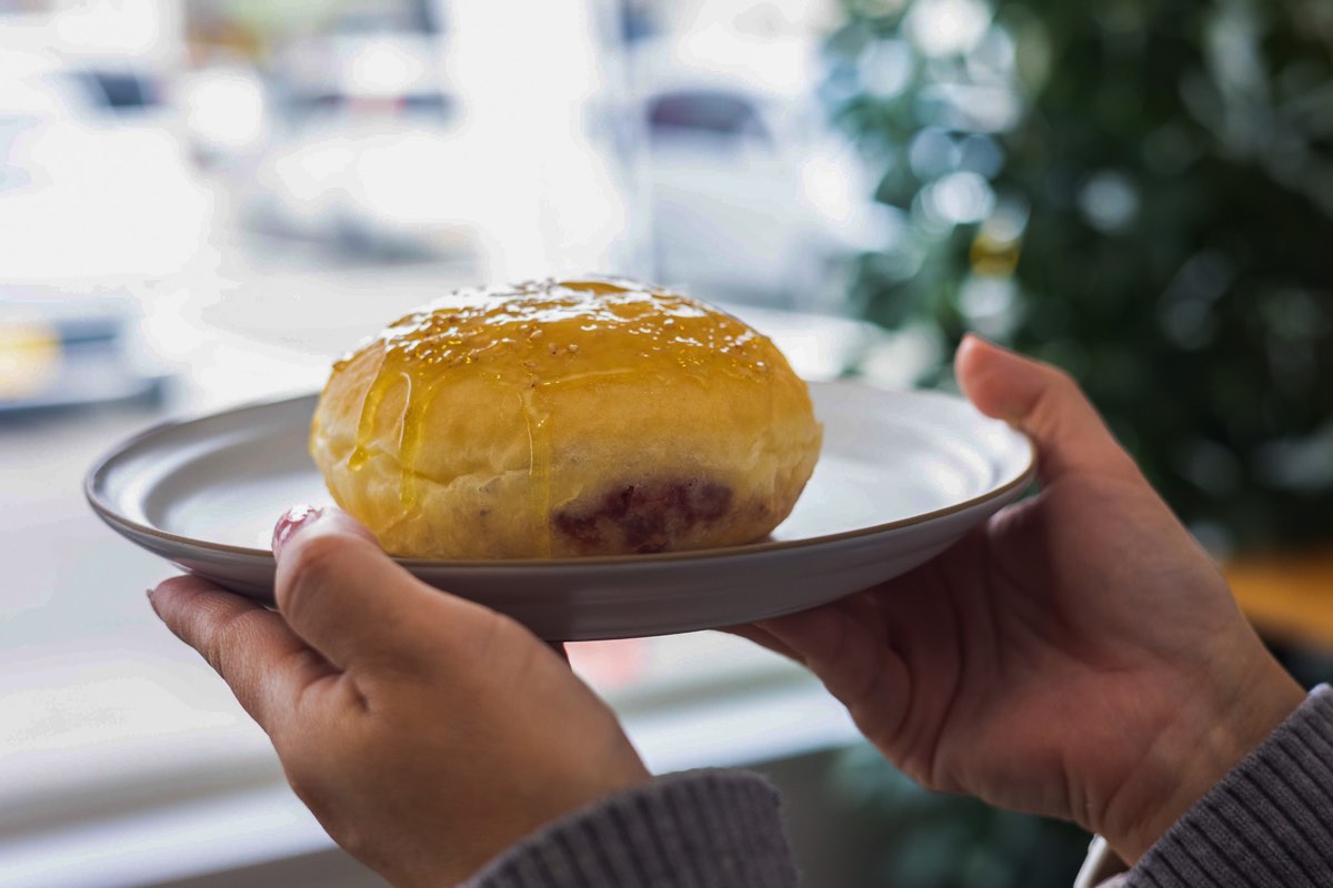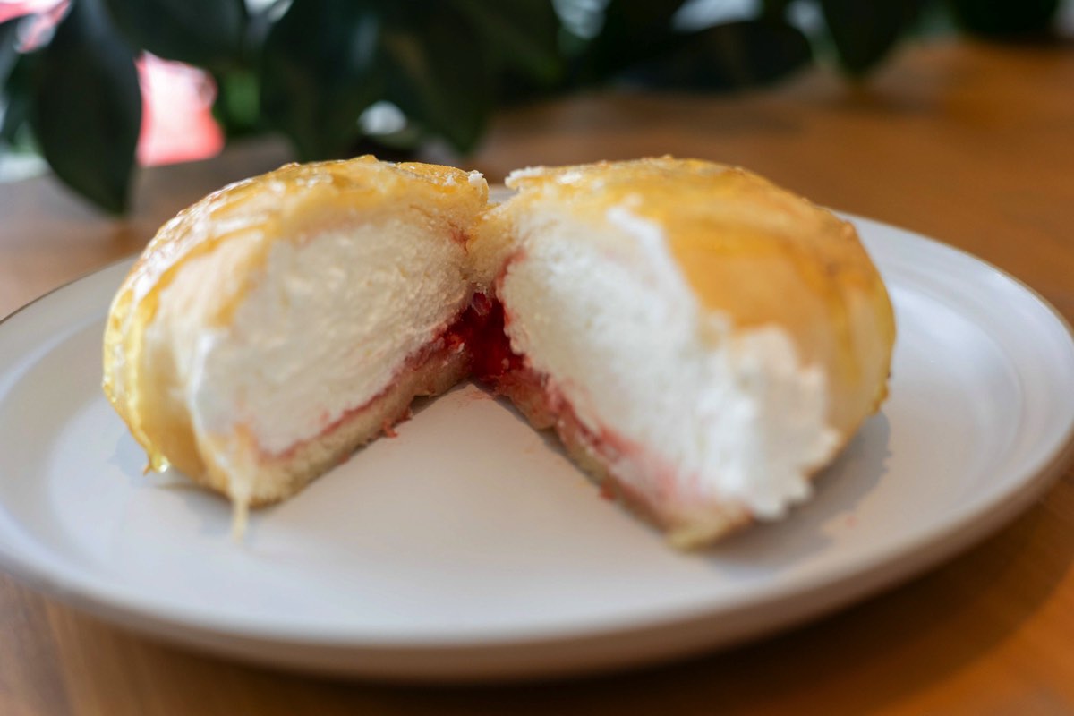 ロングチュロスにも惹かれたが、バンズクリームドーナツなるものを発見し、「いちごクリーム」をいただくことに。