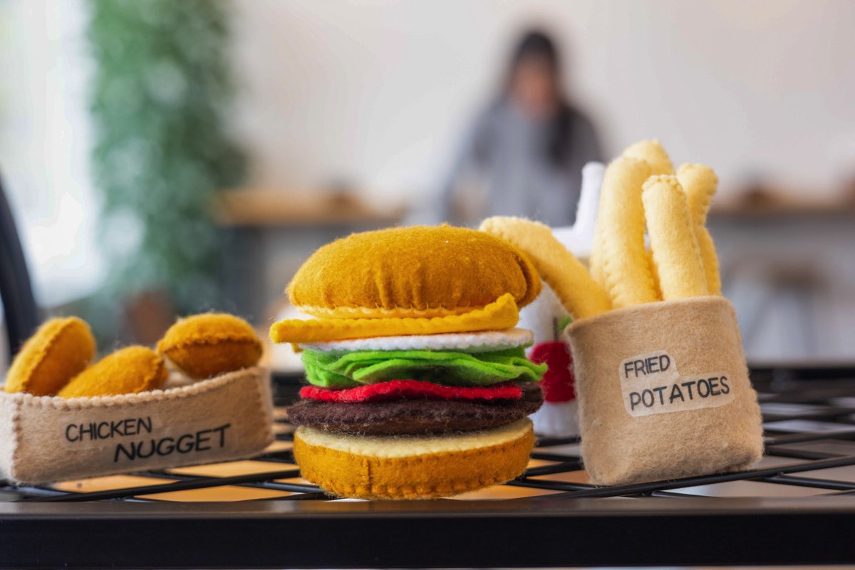 オーダーを受けてから一つひとつクリームを入れ、表面にカリカリの飴がけを施す。「ハンバーガー屋さんのドーナツだから、見た目にも遊び心を♪」と店主の小俣順代さんが言う通り、まるでバーガーみたい!!
