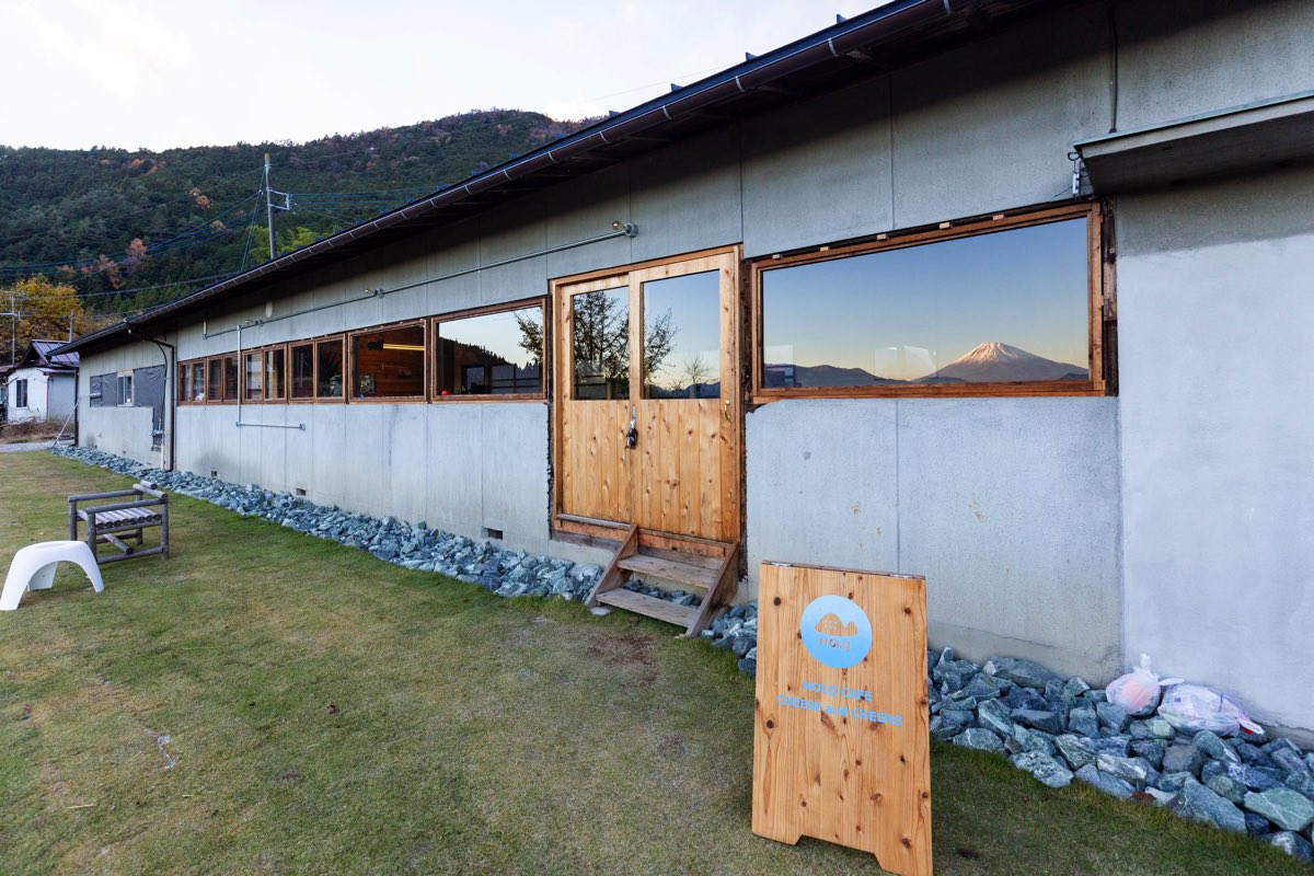 この美しい景色に魅せられ、ものづくりの遺伝子が残る山梨県平林集落を新たな挑戦の場に選んだという。かつては地域の産業であったセーター工房を、建築廃材を集めてすべて自分達の手で改修した。