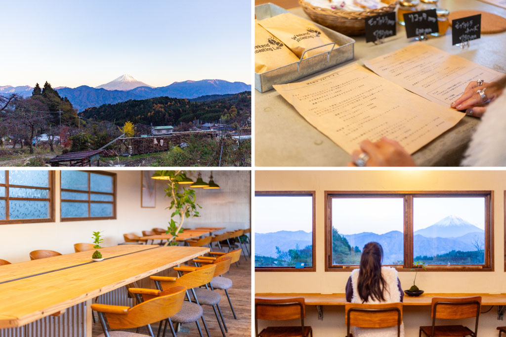 脱サラエンジニアのおふたりが2年がかりでDIYした店内の窓には、刻々と時間の経過とともに移り変わる富士山がまるで額縁の中の絵のように映し出される。特等席のカウンター席に座り、思わずウットリ…。
