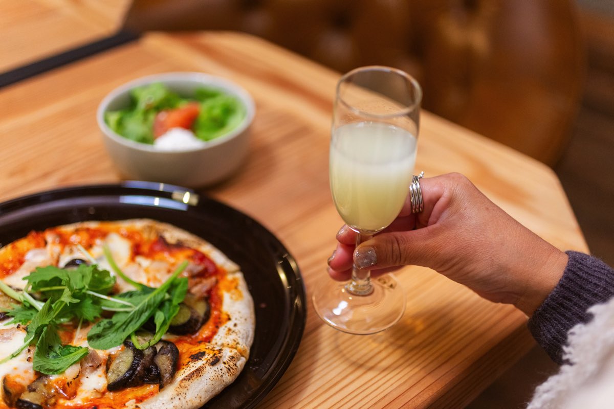 工房では、山梨県産の搾りたて牛乳を使ったモッツァレラを丁寧に手造りする。牛乳本来の甘みが感じられるこのモッツァレラを存分に味わうべく、ピザをオーダー。