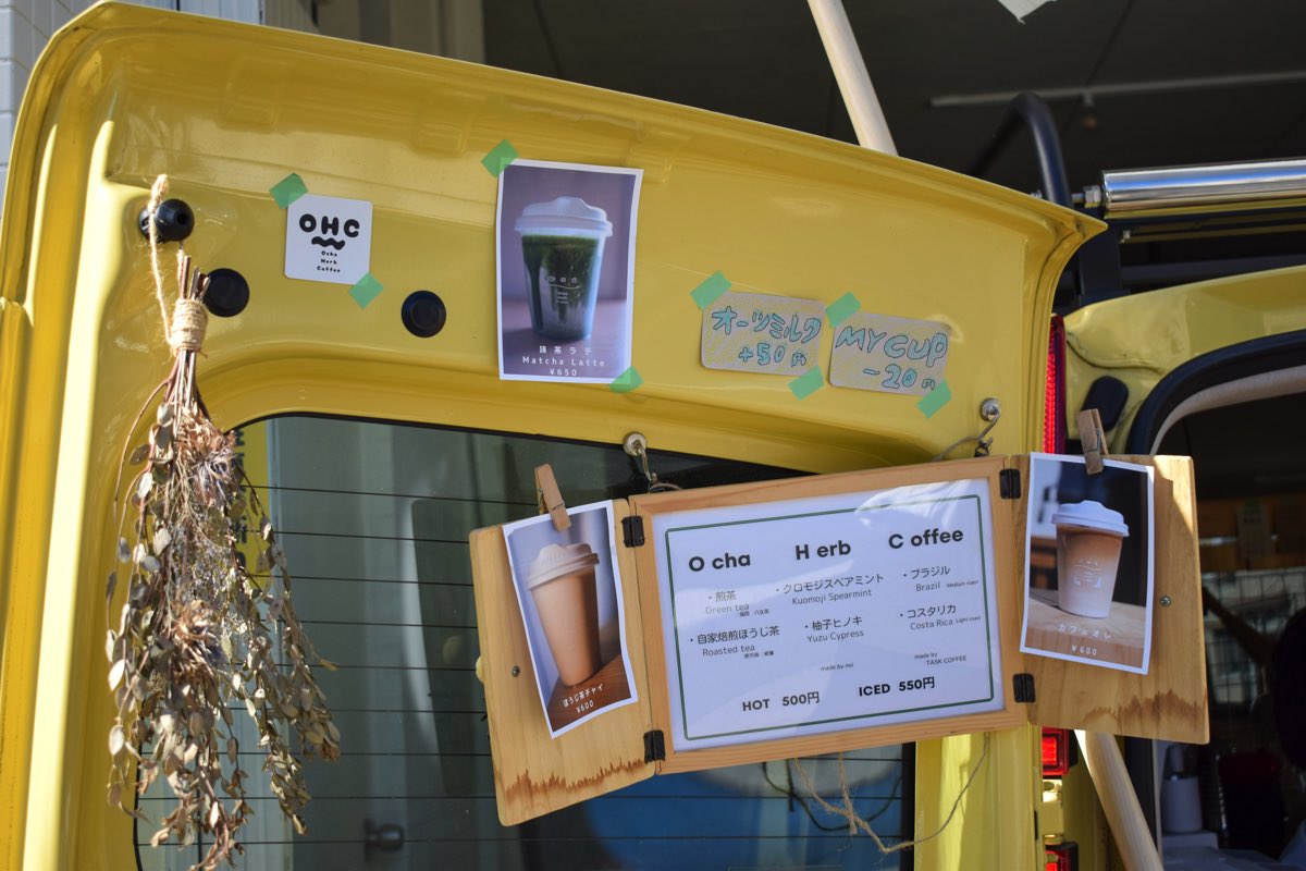 OHCとは「お茶・ハーブティー・コーヒー」の頭文字をとったもの。オーナーの中澤恵門さんは、福岡のカフェや山梨の「AKITO COFFEE」で働きながらコーヒーを学んでいたという。コーヒーのほか、お茶やハーブティーの淹れ方や奥深さに興味を持ったことがきっかけで、3つすべてが味わえるキッチンカーを2024年5月より始動!
