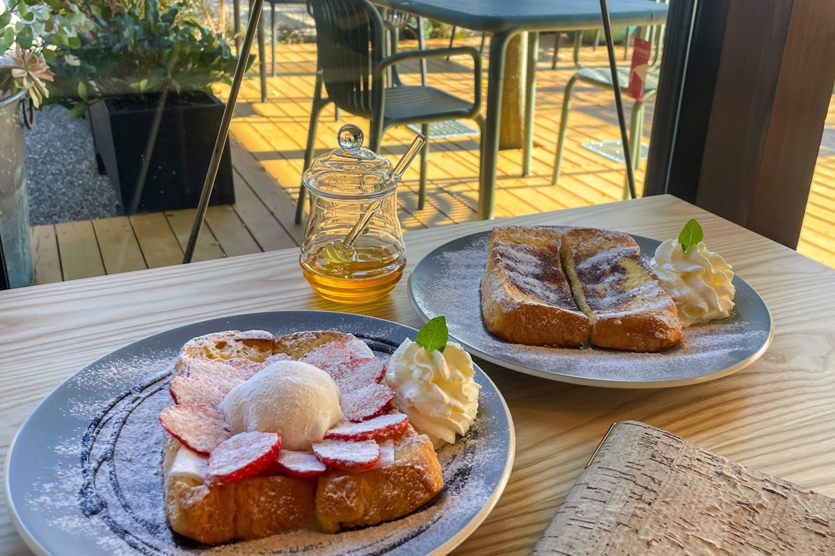 “宣教師が愛したフレンチトースト”と称されるフレンチトーストを堪能するぞぉ。特製アパレイユに一晩じっくりと浸したイギリスパンをオリジナルの調理法で仕上げ、しっとりふわふわ~。