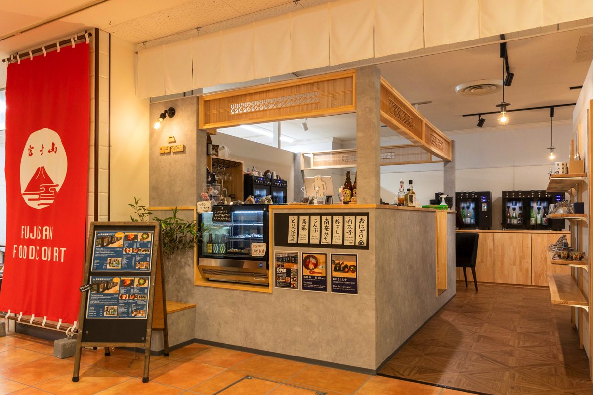 エスカレーターか階段で地下1階におりて、「FUJISAN FOODCOURT」の赤くて大きな旗を目指して進むと、突き当たりにお目見え!