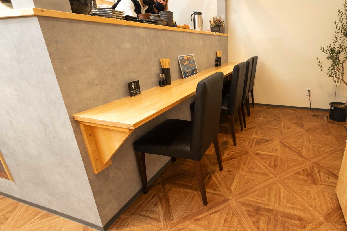 入口では、おにぎりや海鮮丼などのバラエティに富んだオリジナルメニューを販売。電車やバスを待つ時間にテイクアウトしたり、奥のカウンター席でイートインしたりと、様々なシーンで利用可能だ。購入してフードコートで食べるのもOK。