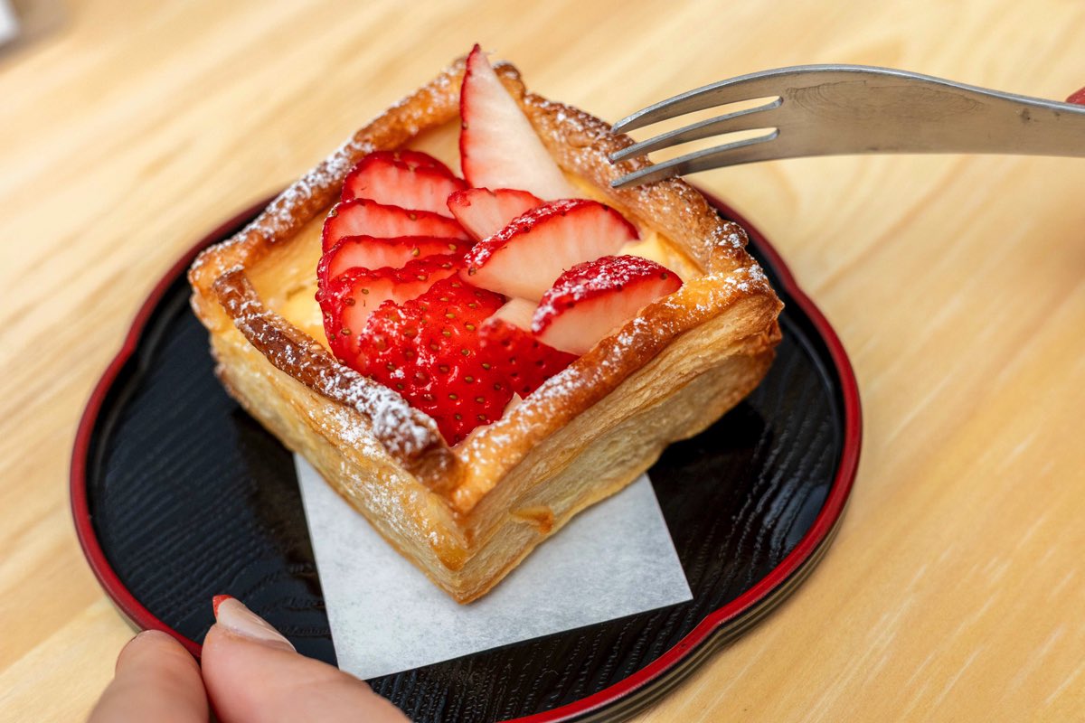 スイーツには定番のアップルパイを!と思ったら「季節限定でいちごもあります!」なんて、ラッキー♪とろ~っと濃厚で甘すぎないお手製カスタードにさっくりとしたパイ生地、甘酸っぱいいちご…言うまでもない、美味しすぎます♡