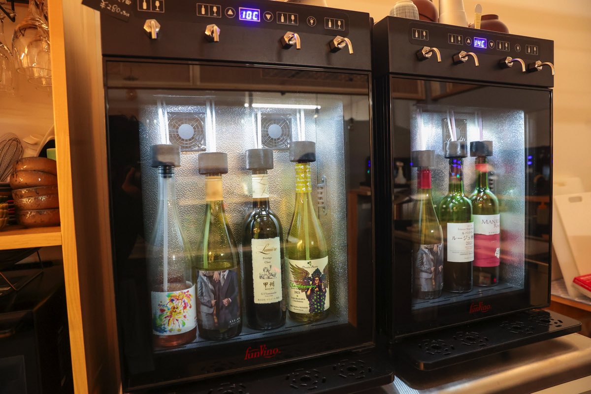 日本酒だけでなく、ワインも随時8種類が揃い、飲み比べができちゃう!ワイナリーの試飲みたいに自分好みの味を発見できるのが嬉しい。