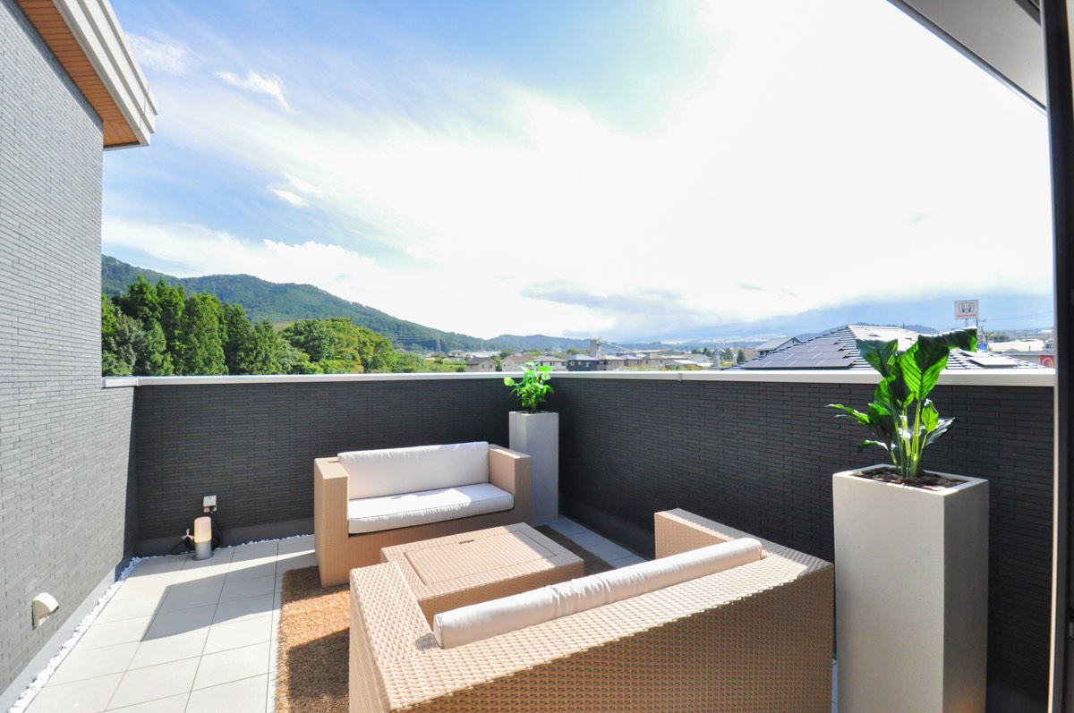 小屋裏空間を利用した3階の「アトリエ」は、近隣の屋根の高さにある屋上庭園。青空リビングと一体となって多目的に利用でき、屋外で使用するBBQ用品やテントの収納スペースとしてなど使い勝手も抜群。
