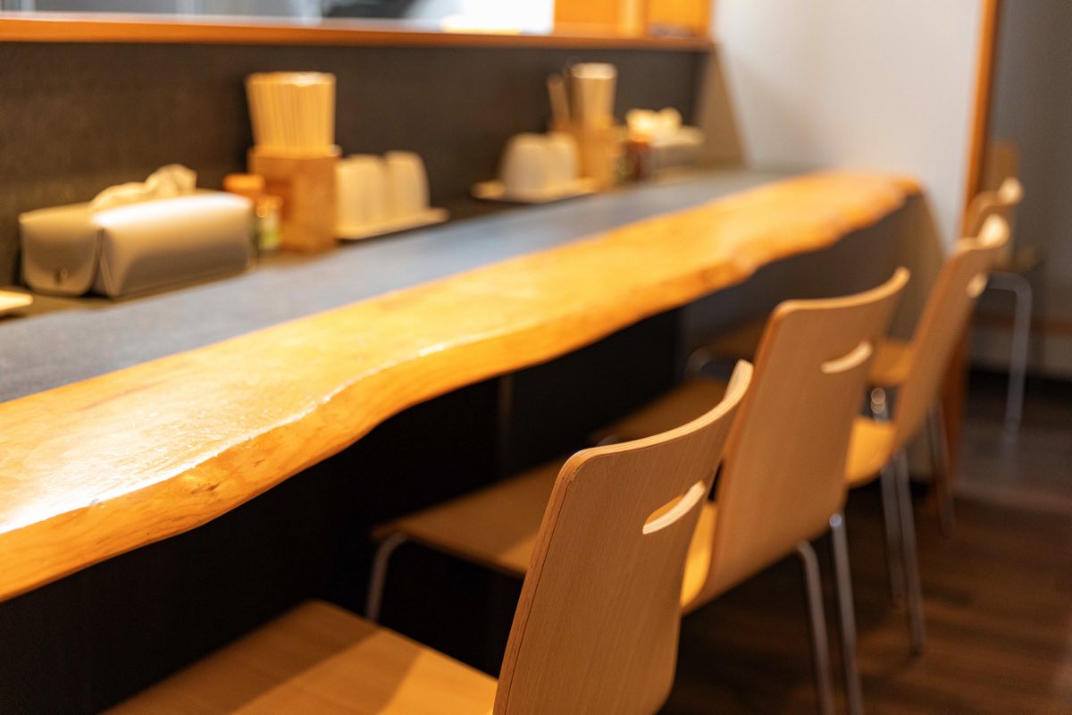 店内はカウンター8席のみで、入口すぐの券売機で食券を買う。