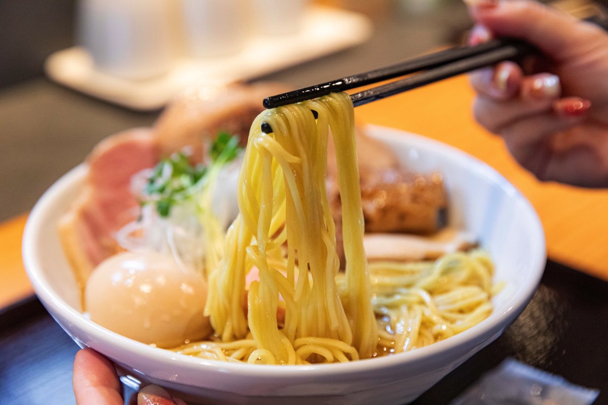麺はフジハラ製麺の中細ストレート。麺線が美しく整い、見た目から期待度は抜群なのだが、つるっもちっと、なめらかな喉越しも最高!!どこまでも上品に美しく美味しく…そんな店主の美学を感じずにはいられない。
