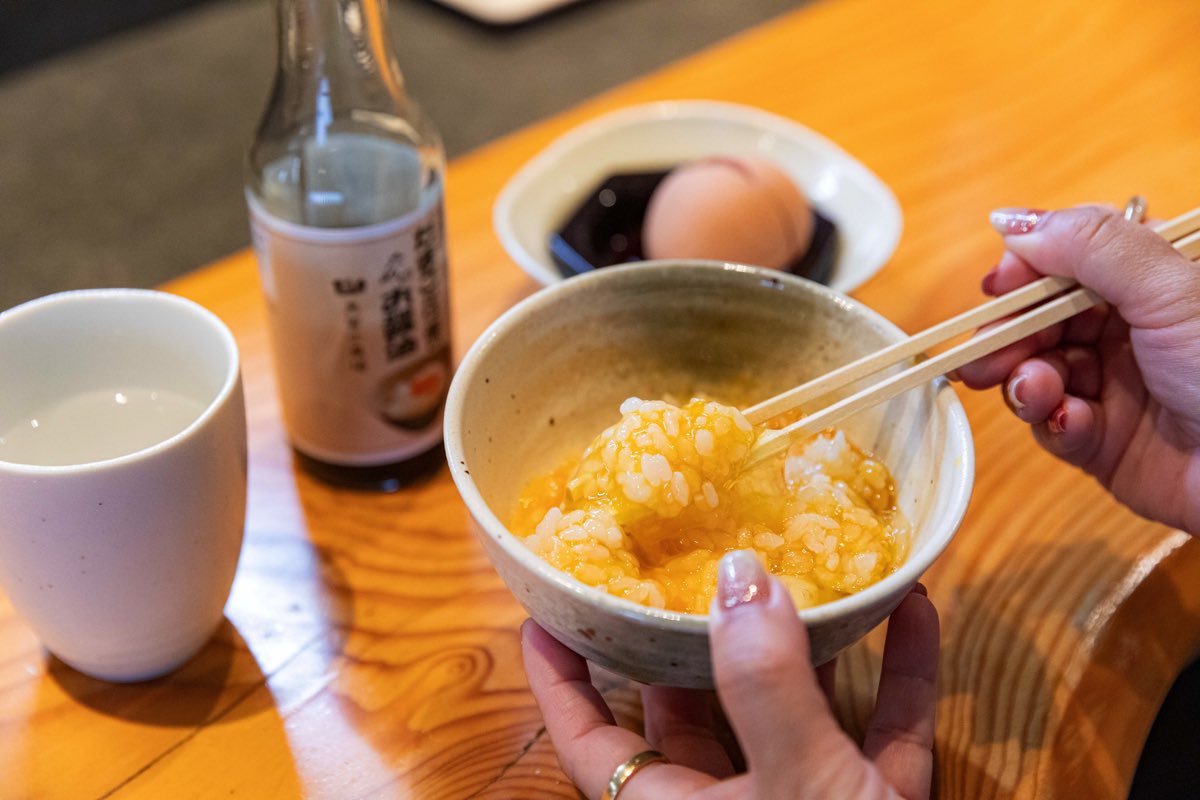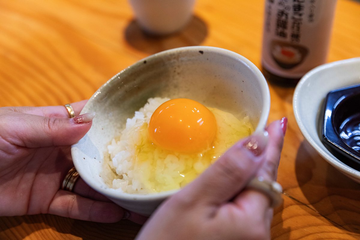 黒富士農場の放牧卵は殻が厚くて、割る瞬間から違いがわかるはず。ぷりっぷりの新鮮卵かけごはんは醤油にだってこだわりたい。「たまごかけご飯のためのお醤油」をひと回し。かどのないまるい味わいと、ほんのり甘さもある醤油が、ごはんの甘さも相まって濃厚な卵をまろやかに包み込む。