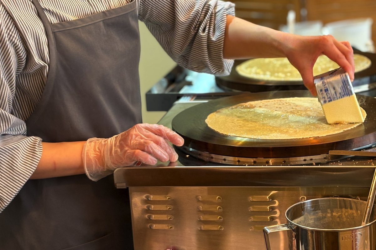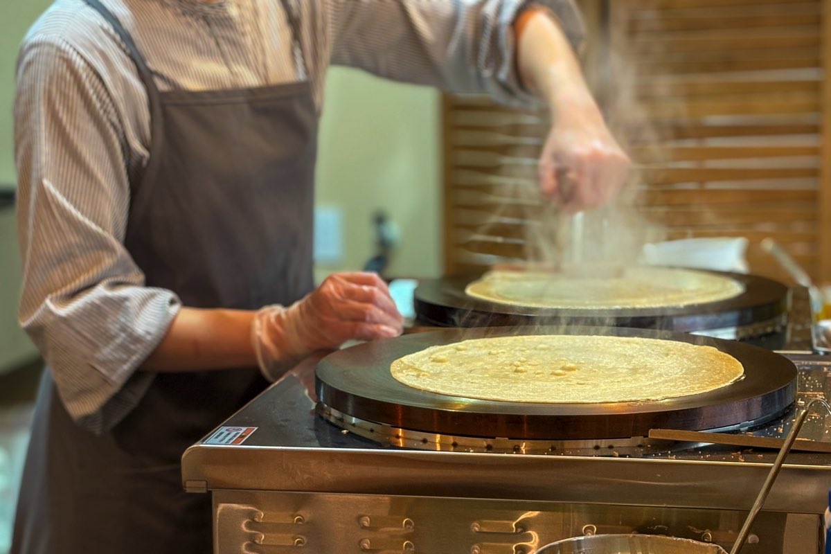 パティシエールの山寺さんが愛情深く丁寧に焼き上げるクレープは、なんだか嬉しそう。「美味しくなるよ!」っていう小さなささやきが聞こえてきそうだ。