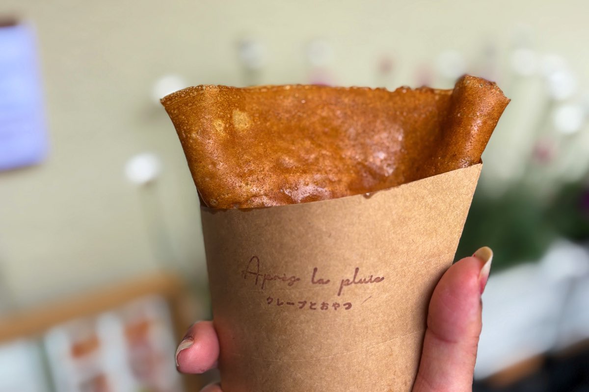 韮崎駅から徒歩1分、韮崎漢方薬局裏の小路に、小さなテイクアウトのクレープ屋さん「Après la pluie クレープとおやつ」が2025年4月13日オープンした。