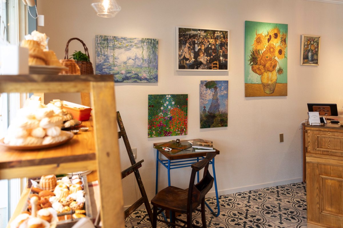 こちらのお店はパリのモンマルトルの丘を想起させる武田通りの坂道に佇むことから、モンマルトルの画家たちが集った小さなお菓子屋さんをコンセプトに掲げる。