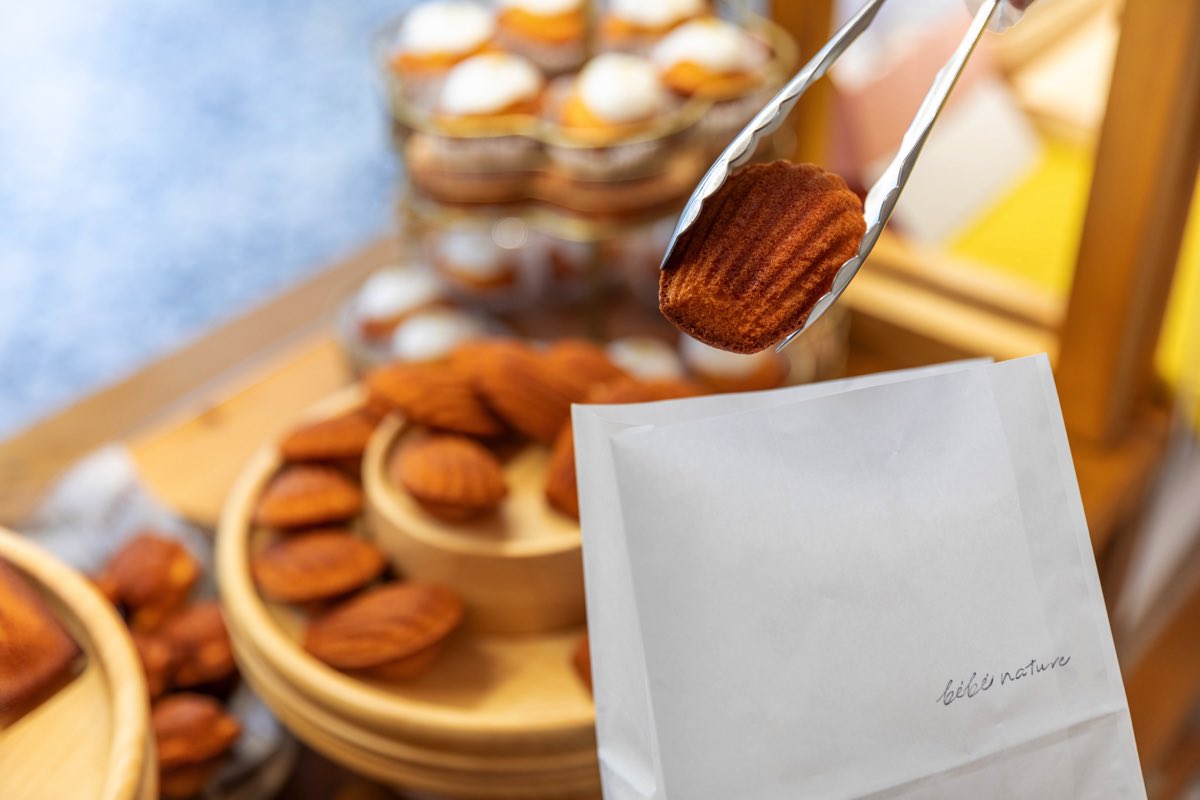 個包装のイメージがある焼き菓子だが、パン屋さんのように焼きたてを1つから好きなだけ買えるのもべべナチュールならではの醍醐味。まわりはカリッと、なかはふわっふわ~の焼きたて食感は、まさにここでしか味わえない贅沢だろう。