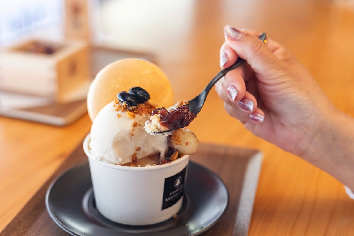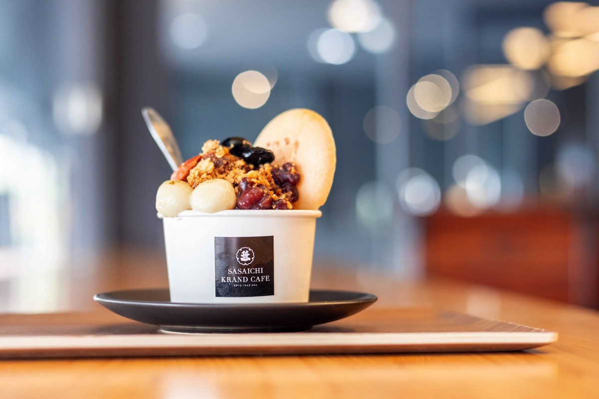 大吟醸アイスクリームに、酒粕チーズケーキ、甘酒グラノーラに自家製豆腐白玉と小豆を加えた、贅沢な甘酒サンデーは、「とりあえずぜーんぶ食べてみたい!」という欲張りさんにオススメ!