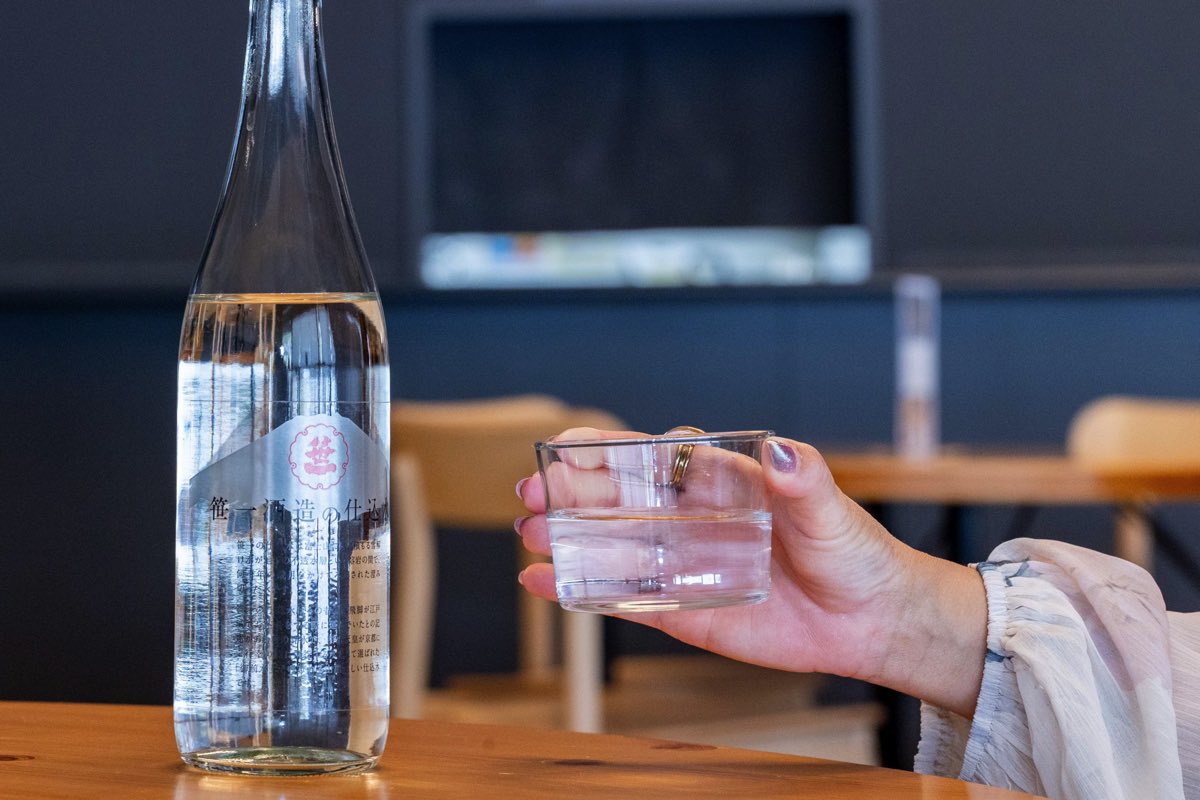 席に座ると、富士山の雪解け水が何十年の歳月をかけてろ過された「笹一の仕込み水」が。なんて粋なはからい!雑味のないクリアな味わいが涼やかに喉を通る。