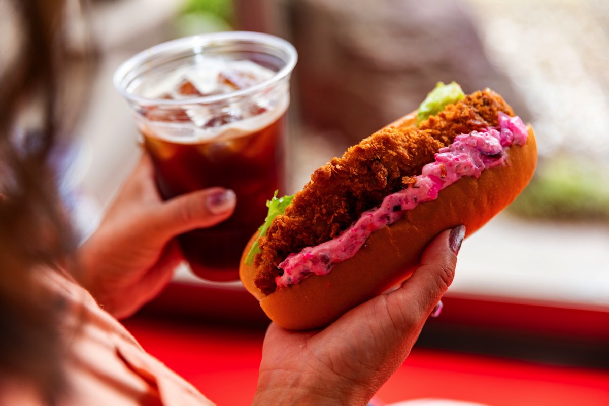 パン職人が焼き上げたもっちりふんわりした生地に山梨が誇るブランド豚・富士桜ポークのトンカツをダイナミックにはさんだサンドも!サクッとジューシーな肉質と、カツの程よい脂に、しば漬け入りの美しいピンク色のタルタルソースが華を添える。あっさりと舌をリセットしてくれるから、ペロリと食べられちゃう。