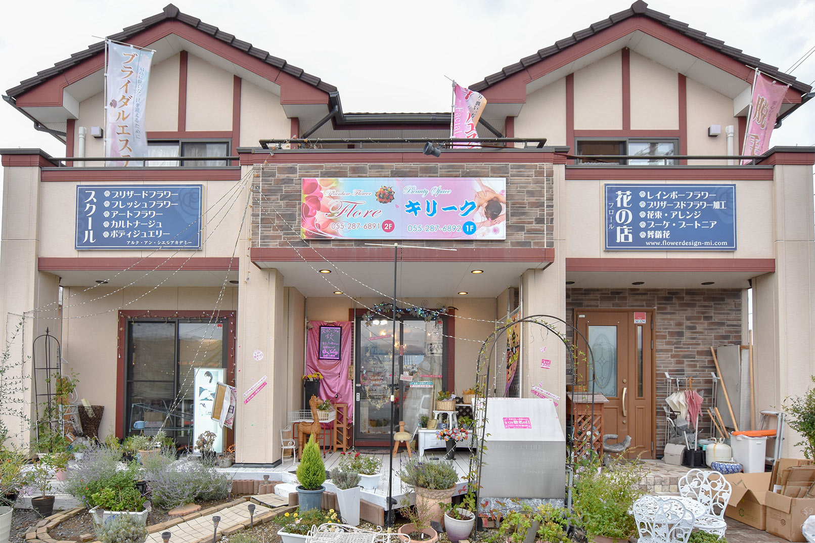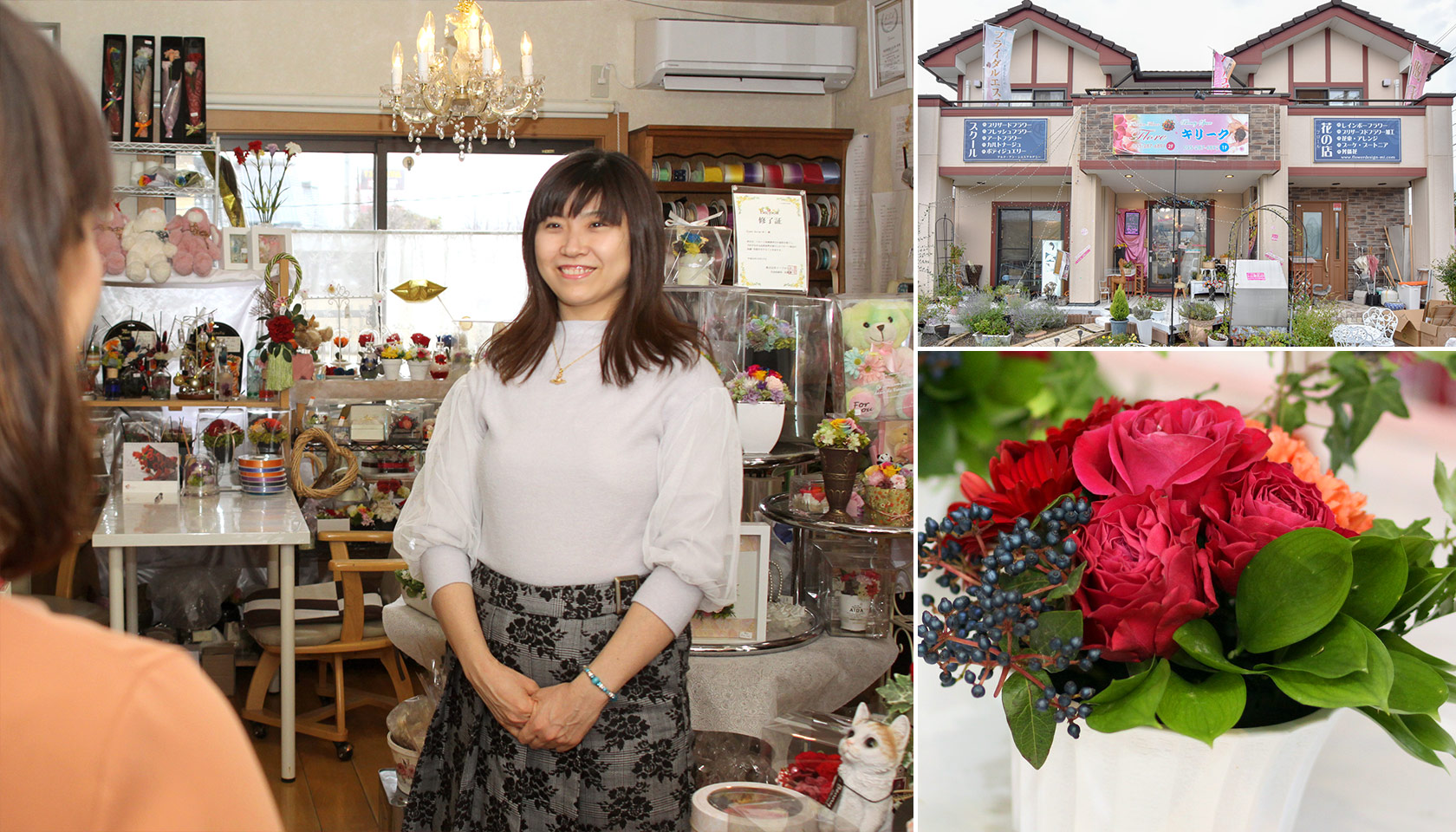 少人数なら店内の奥で、グループなら別棟にもスクールスペースが。色とりどりの花やブーケ、ハーバリウムなどが溢れた空間。石鹸でできたシャボンフラワーなど珍しいものもあり、時間を忘れそう。