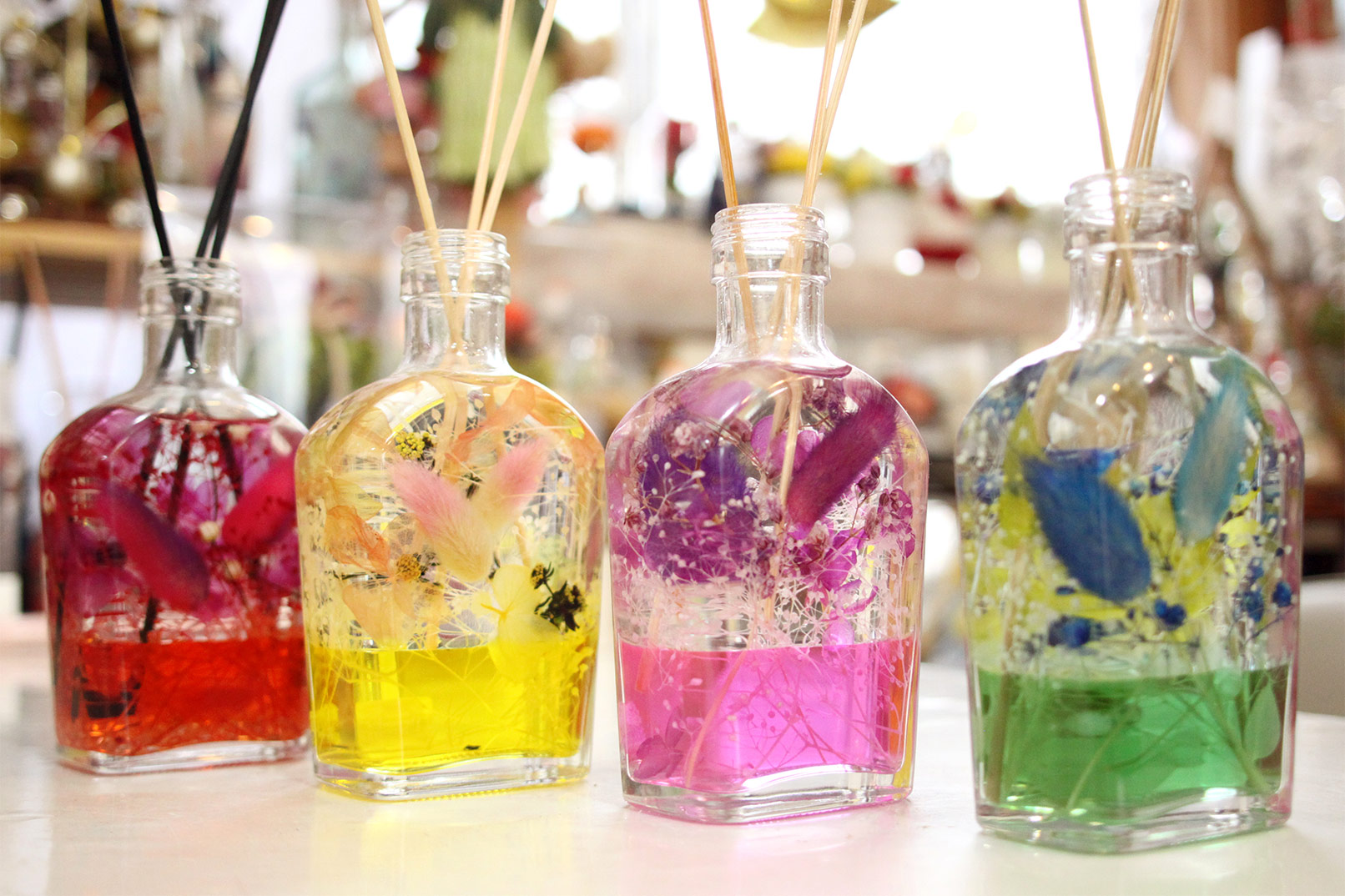 新しい形で花やグリーンを楽しめると人気急上昇中のハーバリウム。カラフルでオリジナルにデザインできるハーバリウムに香りをつけた「ハーバリウムディフューザー協会資格取得レッスン」を開催。
