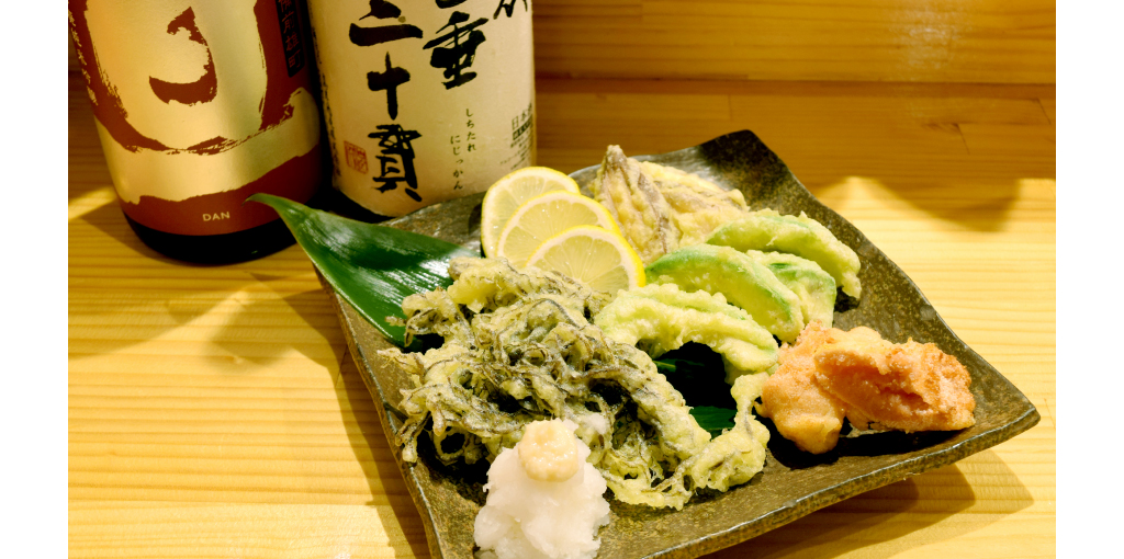 明太子・アボカド・もずく・いぶりがっこクリームチーズと、どれもなかなかお目にかかれない逸品天ぷら!