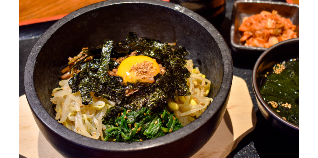 丁寧に味付けされた5種類のナムルやひき肉が混ぜ合わさったシンプルな石焼ビビンバ。おこげを作って食べるのも◎